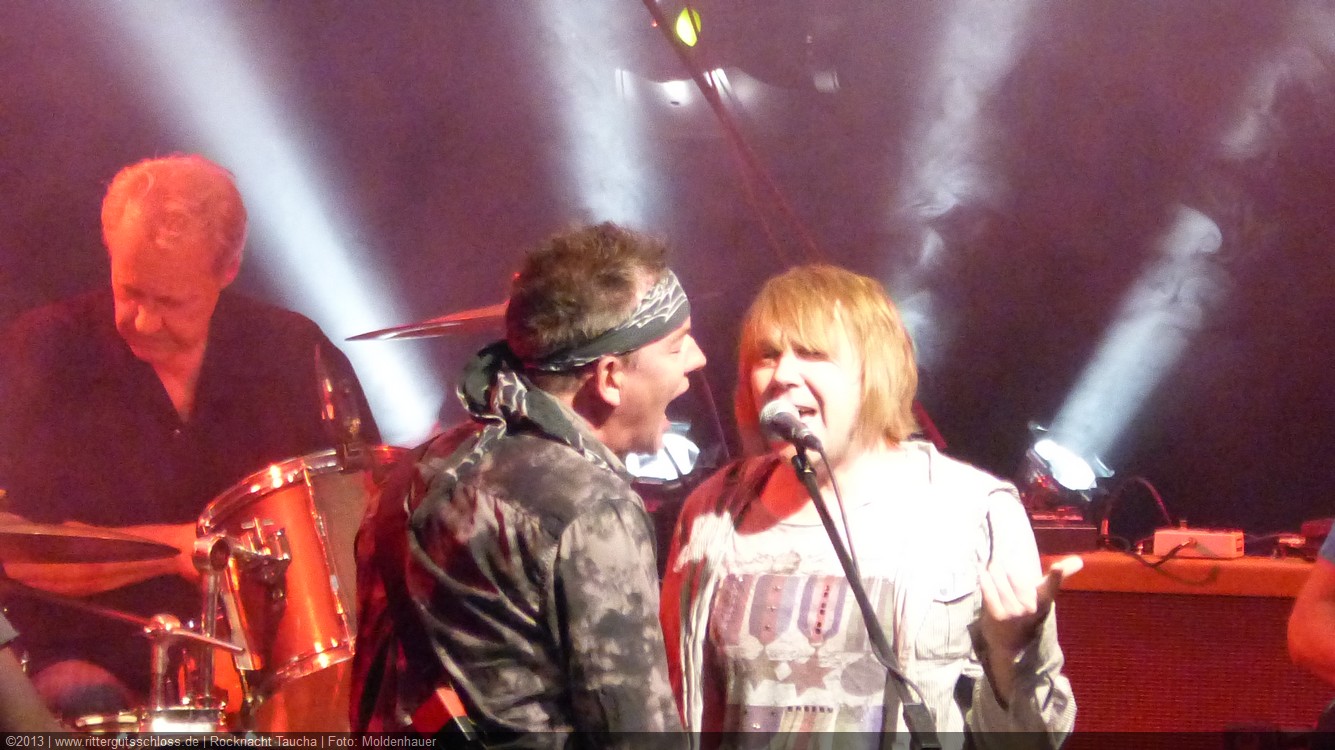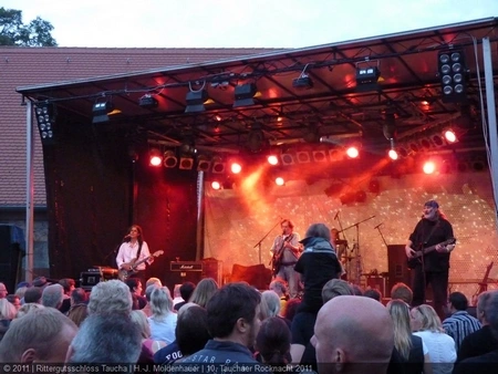 Es gibt sie noch, die Rockfeste, die auch funktionieren! Zum 10. mal lud Taucha, was ein wenig im Schatten von Leipzig ( zu unrecht ) liegt, zum Rockfest ein. Viele kamen, der Schlosshof war sehr gut gefüllt. Die Schlangen an den „Fresständen“ rissen nicht ab, was in der heutigen Zeit nicht oft mehr vorkommt. Alles richtig gemacht, der Veranstalter, dickes Lob! Renft wurde gut platziert, 20 Uhr und heizte den Kessel ohne Schnörkel und mit defragmentierter Festplatte ein. Selbst viele junge Leute fanden Spaß an dem Vortrag und ich sah nur zufriedene Gesichter. Manchmal sind sone Muggen so schnell vorbei, dass man rufen möchte: hängt doch bitte noch ne Stunde ran! Auch dieses mal. Ausklingend noch ner Einladung folgend , hervorragend gespeist ( riesen Dank dafür !! ), prima bewirtet, ging es in einer feinen ortsansässigen Pension ins Bett. Frühstück lecker, paar Gespräche noch und dann ab auf die Autobahn.
