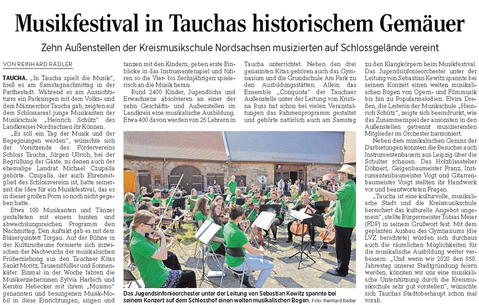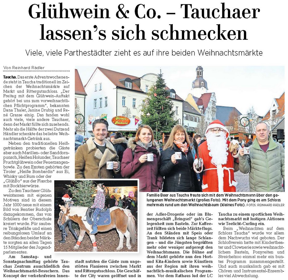 Der Tauchsche 2019 war die Generalprobe für das große Stadtfest im nächsten Jahr zur 850-Jahr Feier in der Parthestadt und 800 Jahre Rittergutsschloss. Das war auch der Eindruck von Bürgermeister Tobias Meier. (...)
