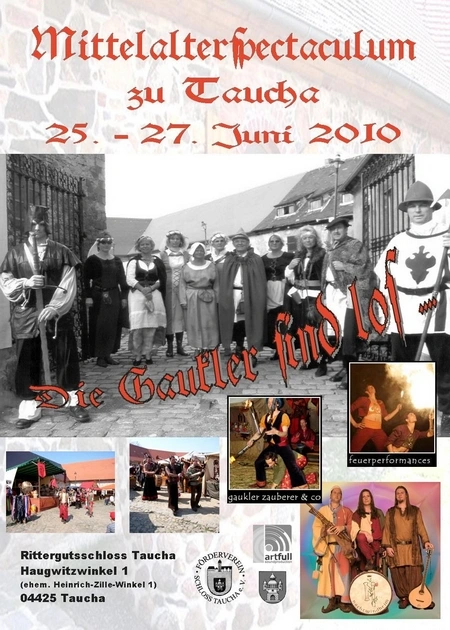 Nach einer schöpferischen Pause fand 2010 wieder ein Mittelaltermarkt auf dem Rittergutsschloss Taucha statt. Die Agentur Artfull aus Gera war der Veranstalter. Am Freitag ging's los. Gleich nach dem Aufbau machte um 18:00 Uhr der Markt auf. Die anwesenden Künstler und Händler wurden vom Schlossvogt (Jürgen Ullrich) begrüßt und herzlich willkommen geheißen. Auch die ersten Besucher ließen nicht lange auf sich warten. Allerdings verhinderten einige Wetterkapriolen schon einen größeren Zustrom.