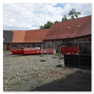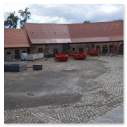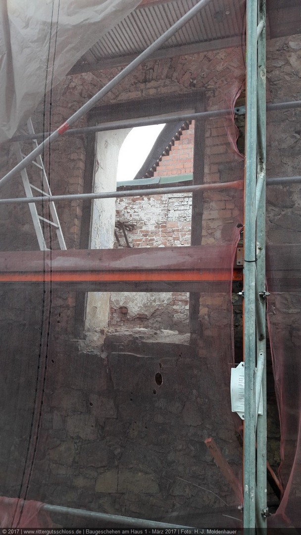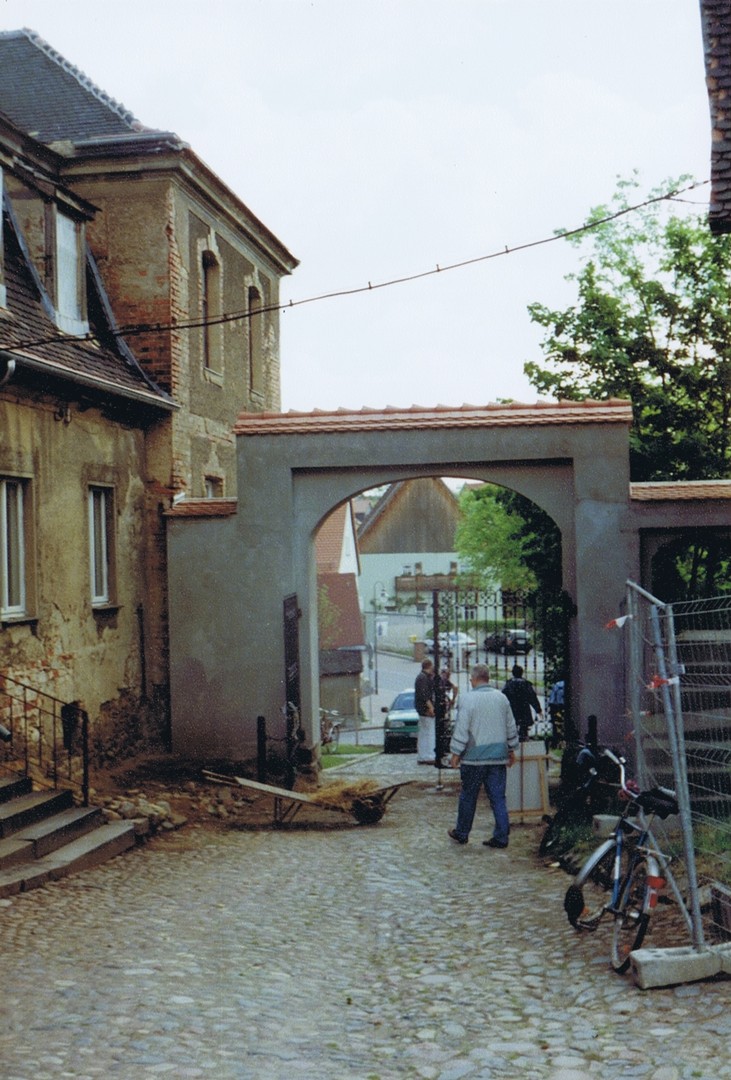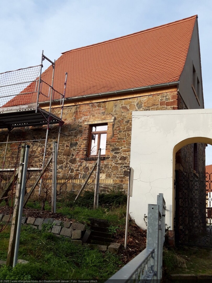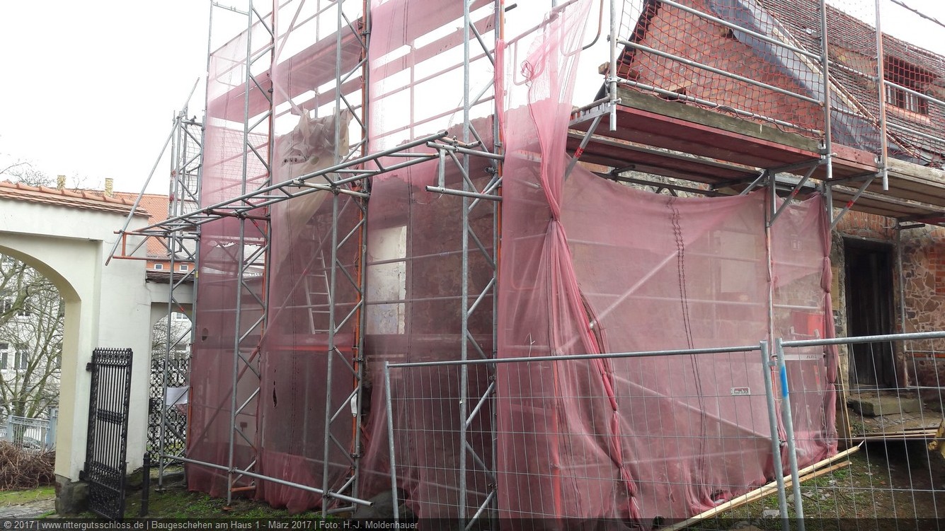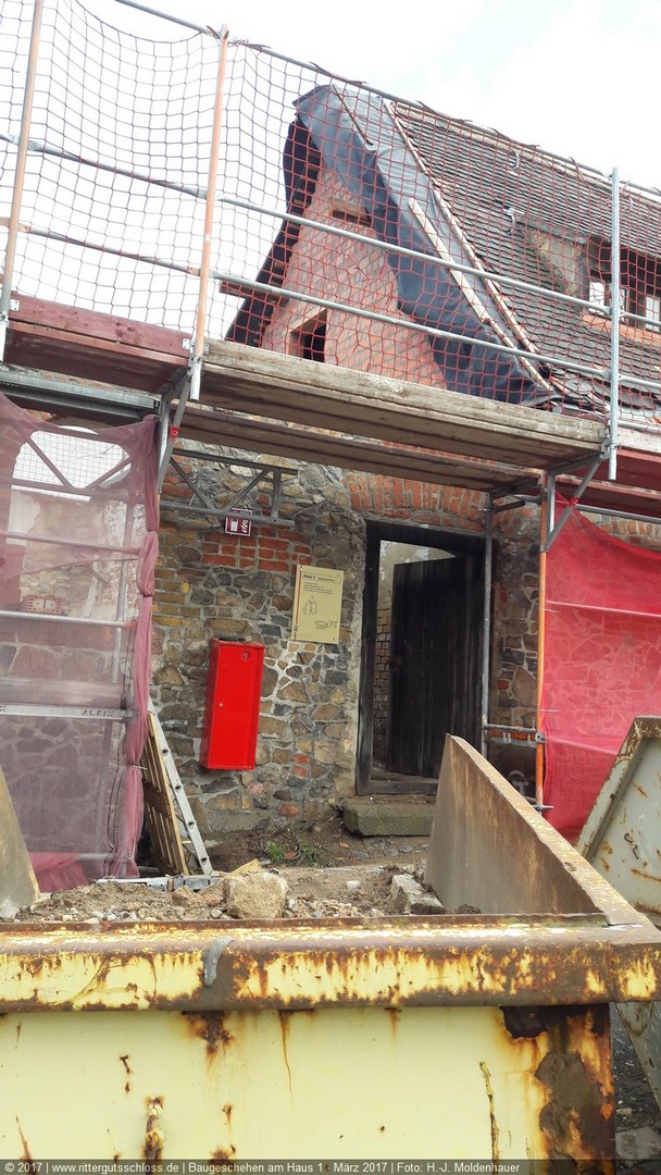 Vorher sind aber noch umfangreiche Arbeiten zur Sanierung und zum Ausbau der Gebäude 1 bis 7 notwendig. Diese haben mit der Erneuerung des Dachstuhls und dem Neuaufbau des Giebels von Haus 1 Anfang 2017 begonnen. Die anderen Teile verharren für den Betrachter noch in ihrem Dornröschenschlaf. Aber hinter den Kulissen wird fleißig geplant, entworfen, gibt es Abstimmungen mit dem Brandschutzgutachter und den Haustechnik-Planern, werden die zukünftigen Nutzer zu ihren Wünschen und Vorstellungen befragt und beraten, um in Kürze den Antrag auf Baugenehmigung beim Landratsamt Nordsachsen einreichen zu können.