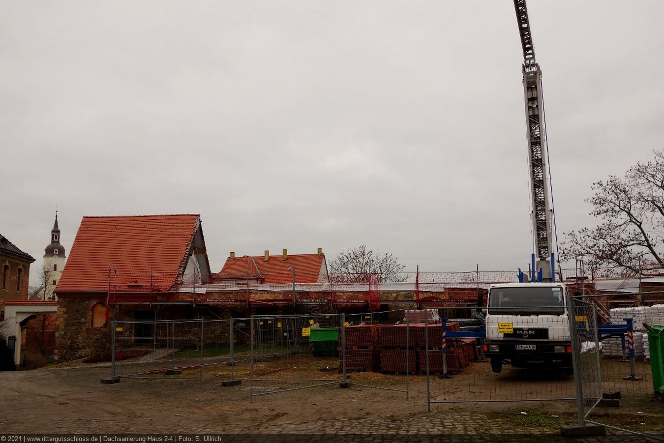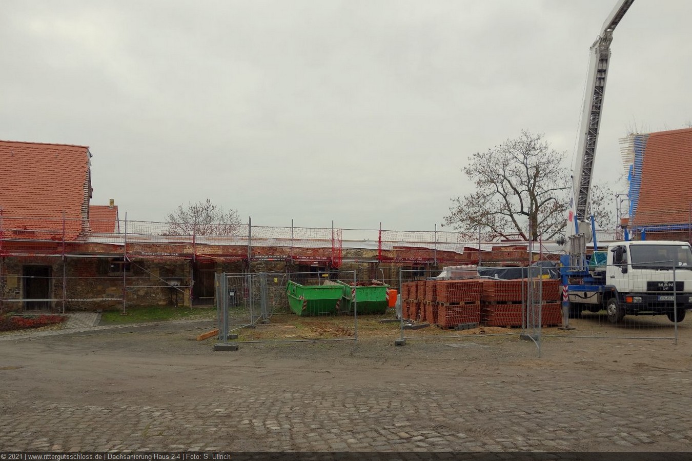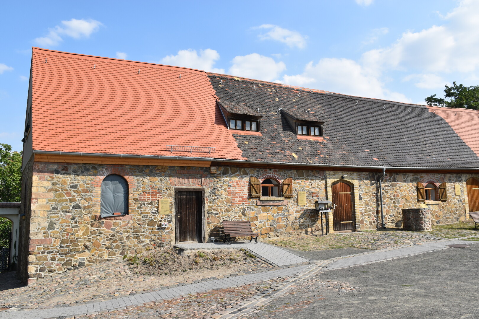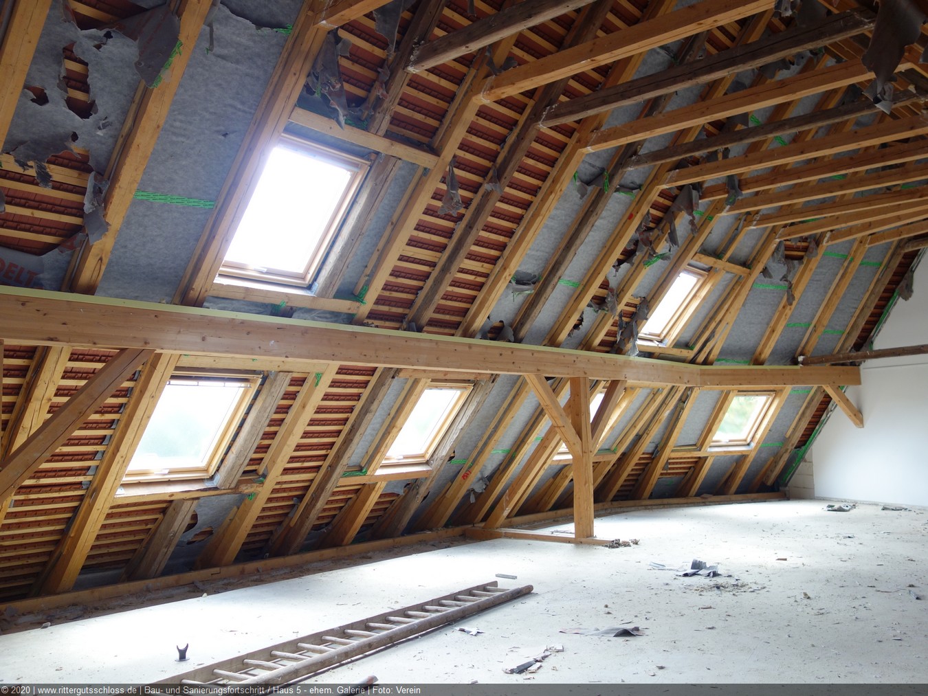 Vorher sind aber noch umfangreiche Arbeiten zur Sanierung und zum Ausbau der Gebäude 1 bis 7 notwendig. Diese haben mit der Erneuerung des Dachstuhls und dem Neuaufbau des Giebels von Haus 1 Anfang 2017 begonnen. Die anderen Teile verharren für den Betrachter noch in ihrem Dornröschenschlaf. Aber hinter den Kulissen wird fleißig geplant, entworfen, gibt es Abstimmungen mit dem Brandschutzgutachter und den Haustechnik-Planern, werden die zukünftigen Nutzer zu ihren Wünschen und Vorstellungen befragt und beraten, um in Kürze den Antrag auf Baugenehmigung beim Landratsamt Nordsachsen einreichen zu können.