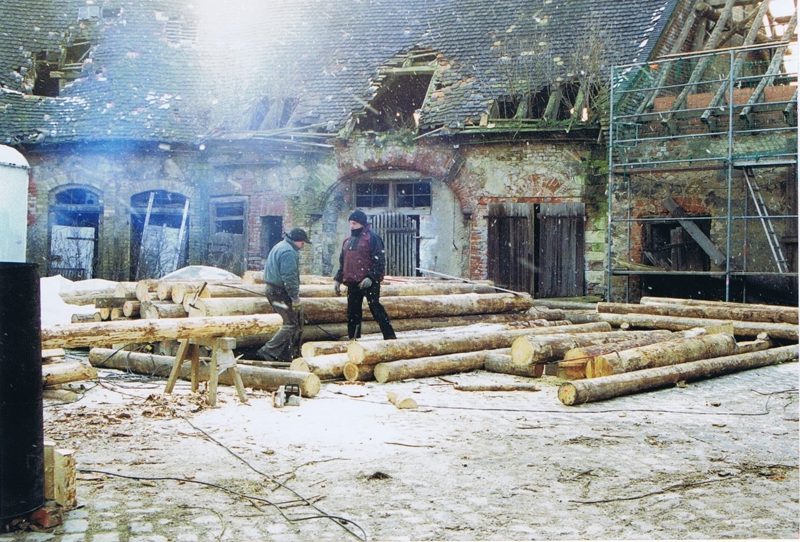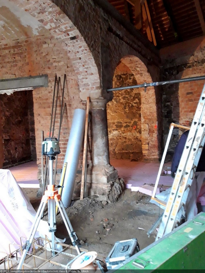 Und das ist nur der erste Schritt. Welche Probleme bei einer Sanierung auftreten können, wissen viele Leser aus ihrer Berufserfahrung oder vom Hörensagen. In einer Anlage wie unserem Schlosshof, der über Jahrhunderte immer wieder umgebaut und den Erfordernissen angepasst wurde, wo es mal gebrannt hat und mal das Dach vom Schwamm vernichtet wurde, wo die Schweinekoben bis heute erkennbar sind und wo niemand weiß, woraus genau die Wände und der Berg, auf dem sie errichtet wurden, bestehen, potenzieren sich die zu erwartenden Schwierigkeiten.