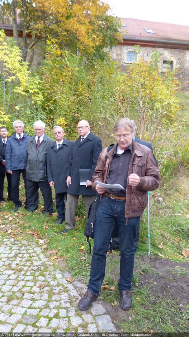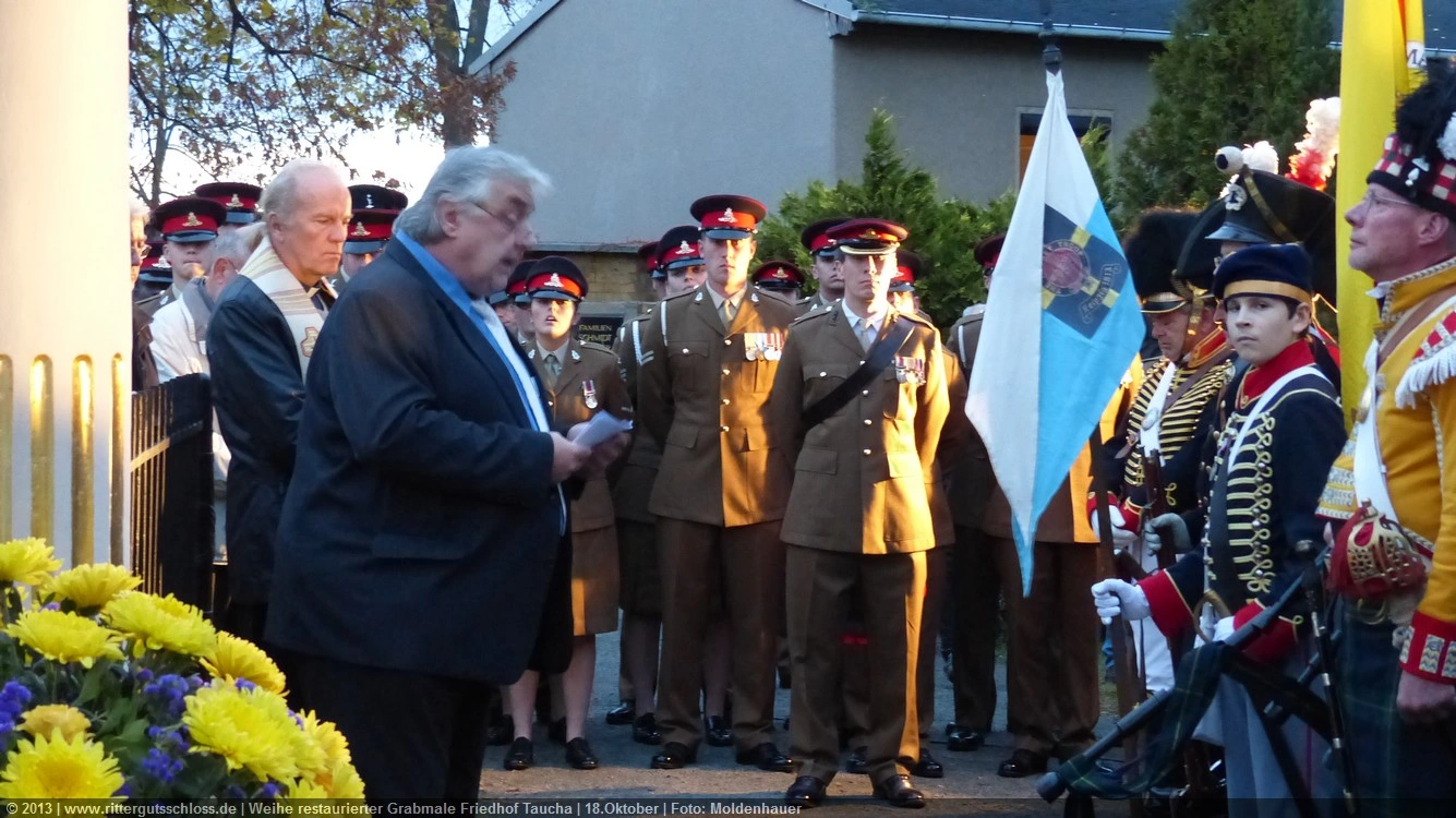 Nach den Worten von Schlossvereinsvorsitzenden Jürgen Ullrich hat die Gedenktafel insgesamt 750 Euro gekostet und wurde von der Firma Hertel hergestellt. Dr. Andreas Schneider, Geschichtslehrer an der Oberschule und Leiter des Projektes, gab dann einen kurzen geschichtlichen Abriss von den Ereignissen vor exakt 200 Jahren in Taucha, soweit diese sich rekonstruieren ließen.