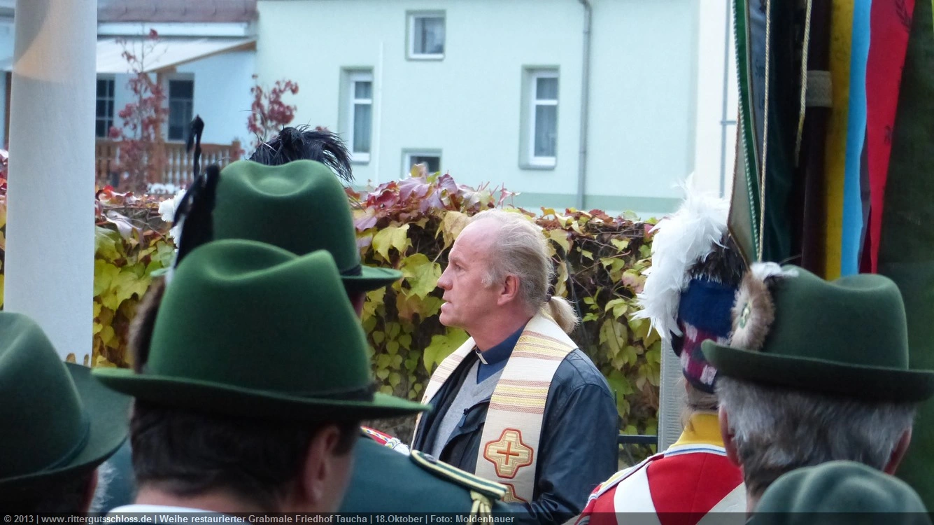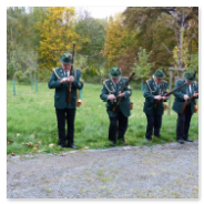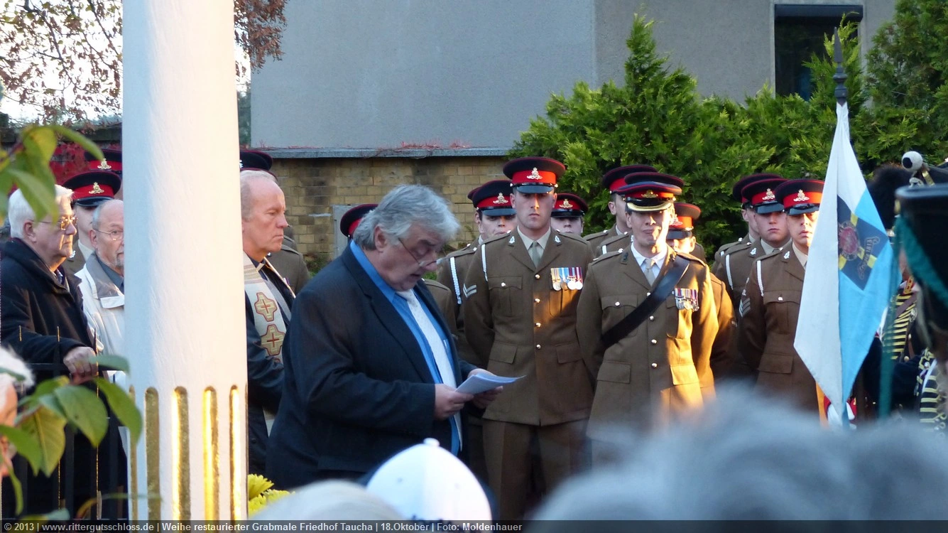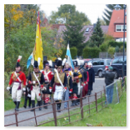 Bevor die Bürgerschützen „Ein dreifaches Salut“ zum Gedenken der Opfer schossen, dankte deren Leiter Werner Dölz allen, die mit dem Projekt die Massengräber dem Vergessen entrissen haben. Mit „Glück auf mein Sachsenland” setzte der Männerchor Taucha den Schlusspunkt unter den ersten Teil des Völkerschlachtgedenkens in Taucha.