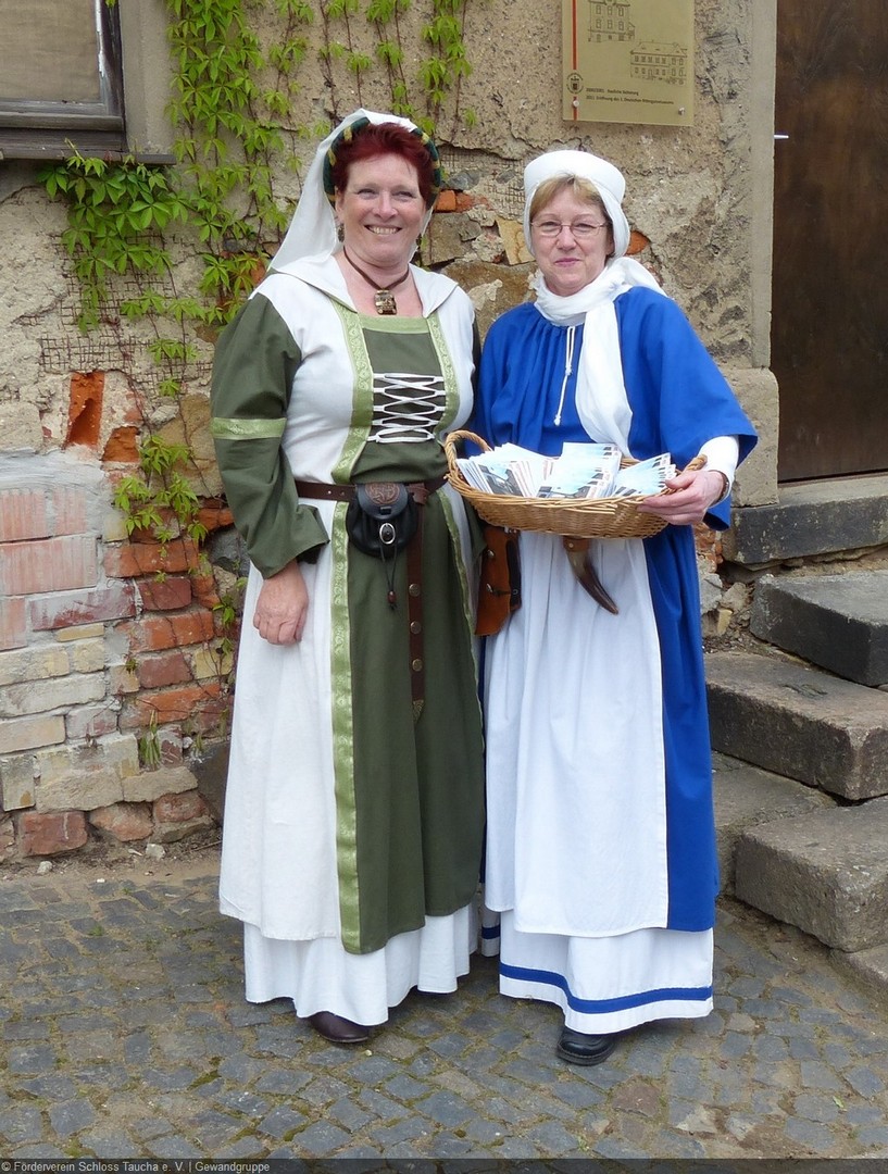 Die Gewänder des Tauchaer Schlossvereins haben in der Zeit des 13. bis 17. Jahrhunderts ihren Ursprung und wurden, soweit als möglich, dem Original nachempfunden. Alle Gewänder sind Unikate, die überwiegend selbst angefertigt worden sind. Durch oftmals zahlreiche liebevolle gearbeitete Details machen die Gewänder ihre Träger unverwechselbar.