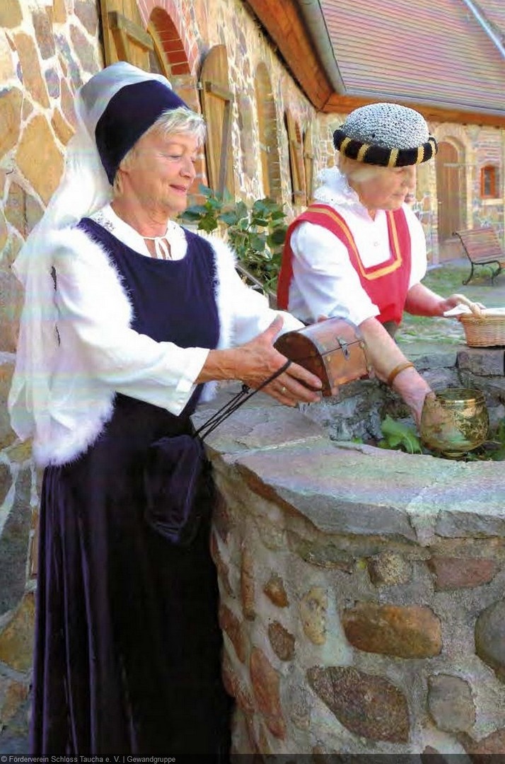 Mit unseren Gewändern stellen wir vorwiegend Personen der Stände des Mittelalters in und um Taucha dar, die manchmal tatsächlich hier namentlich gelebt haben. Um aber ein möglichst umfassendes Bild von der Mode im Mittelalter zu erhalten, zeigen wir auch Personen aus anderen Teilen Sachsens und zum Teil auch darüber hinaus.