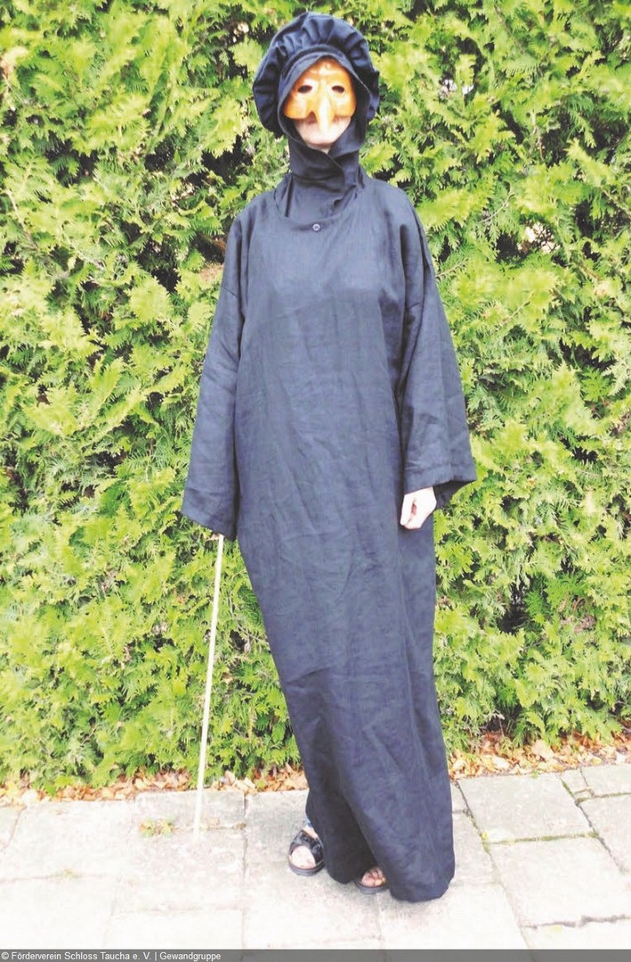 Es gibt Gewänder die unsere Vereinsmitglieder tragen, die sind historisch genau nachgearbeitet, aber nicht schön anzuschauen. Sie waren reine Zweckbekleidungen (wie beim Pestarzt), um sich z. B. vor der Ansteckung bei Pestkranken zu schützen.