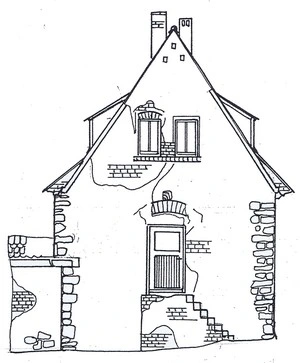 - vor dem Gebäude stand um 1810 das Taubenhaus
