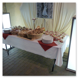 Gemeinsam mit Ihnen und dem Catering-Unternehmen planen wir Ihr Büffet oder jede andere Form der Bewirtung, damit Ihre Festlichkeit auch kulinarisch zu einem unvergesslichen Erlebnis für alle Gäste wird.