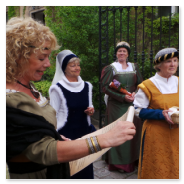 - Empfang durch Mitglieder unserer Gewandgruppe am Schlosstor