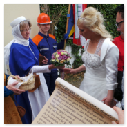 - Feierliche Überreichung der großen Erinnerungsurkunde, versehen mit dem großen Schlosssiegel durch den Schlossvogt Heinrich Hertzogk oder seinen Vertreter