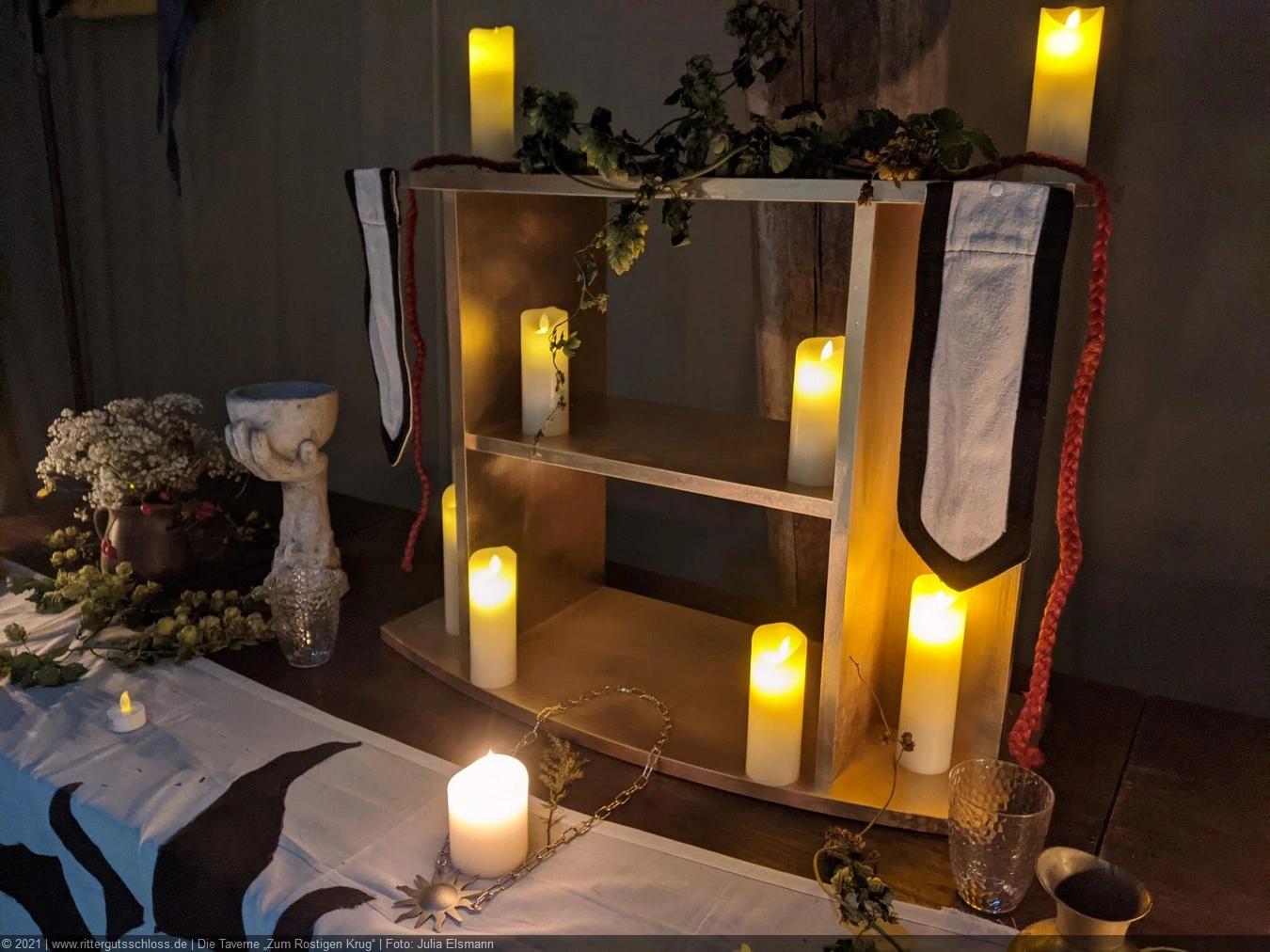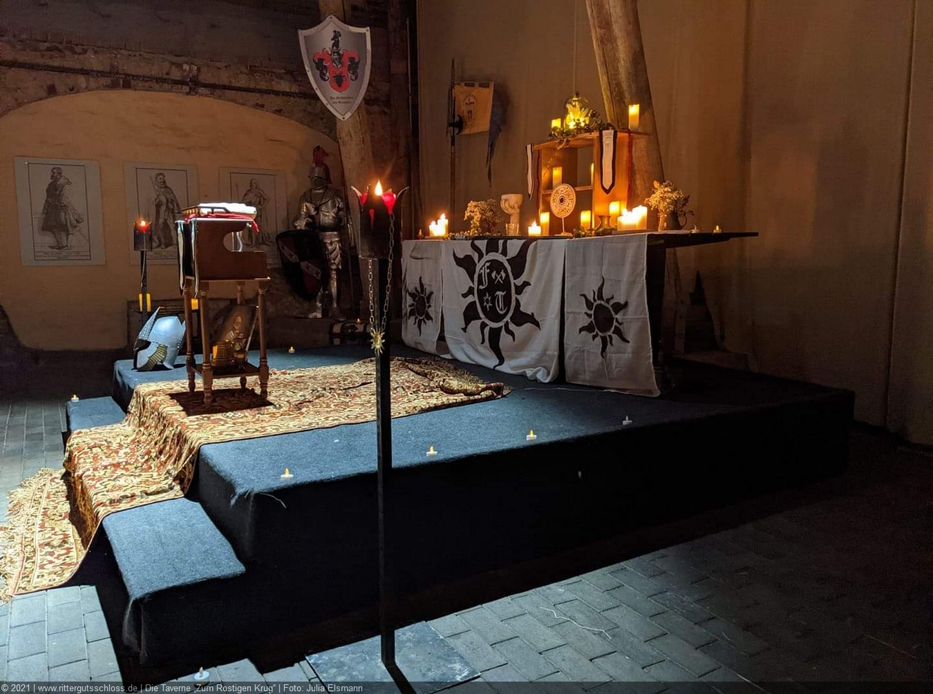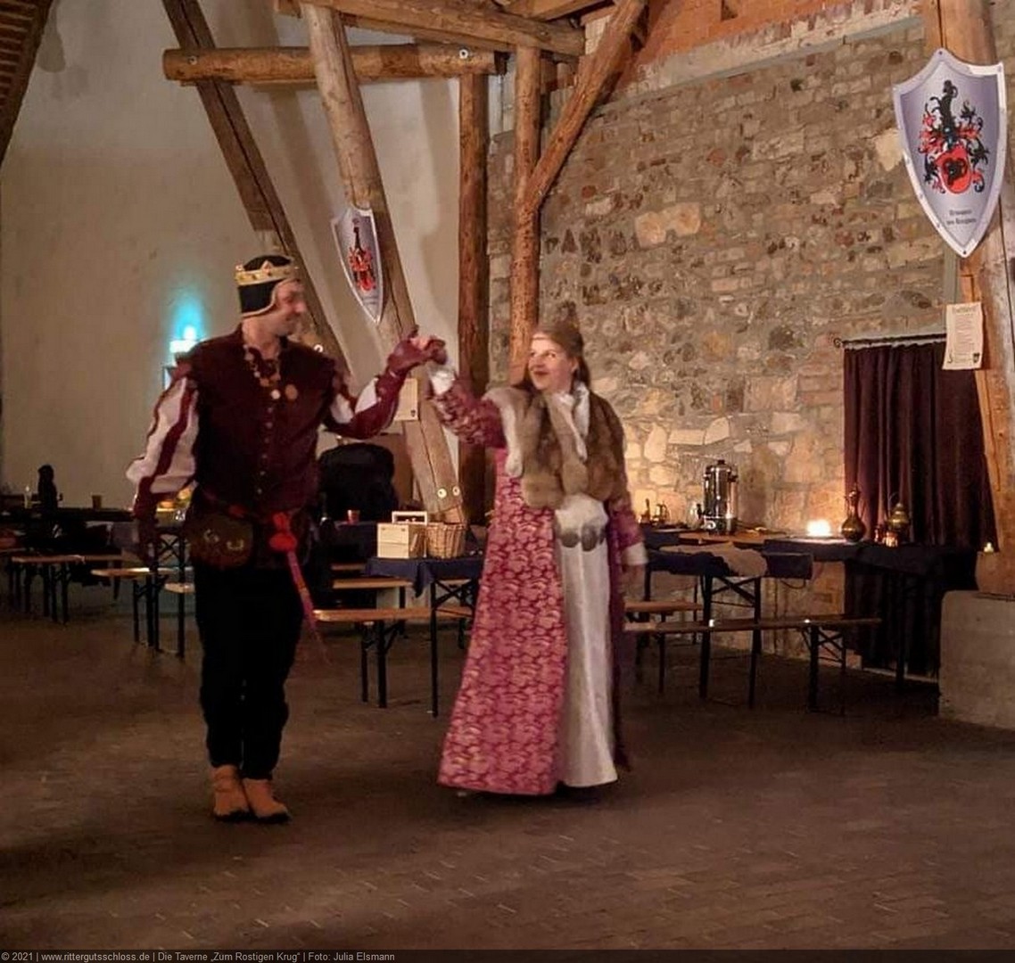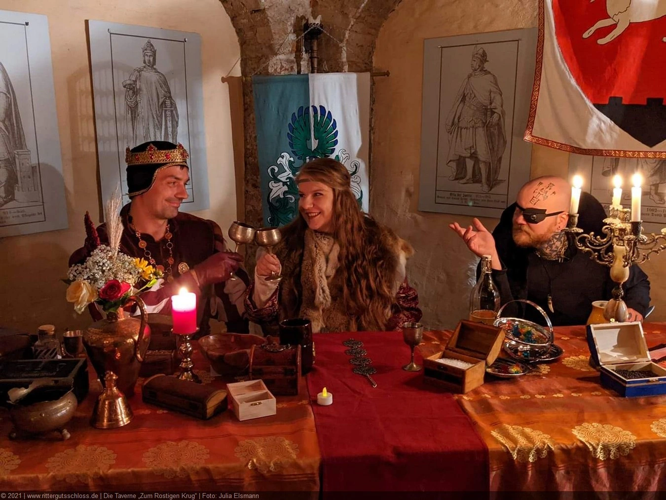 Unsere LARP-Gruppe inszeniert die Taverne „Zum Rostigen Krug“. In regelmäßigen Abständen finden Improvisationen in der Kulturscheune und auf dem Hofareal des Rittergutsschlosses statt.