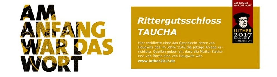 Der Förderverein Schloss Taucha e. V. war seit Juni 2014 Kooperationspartner der Staatlichen Geschäftsstelle „Luther 2017“ und der Lutherdekade. Äußeres Zeichen dafür war das offizielle Logo „Am Anfang war das Wort -Seit 2014 dürfen wir das „Luther-L“ am Tor führen.