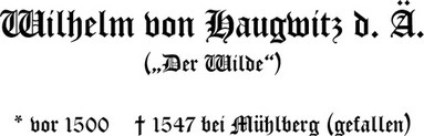 Nach dem Tode des als fromm beschriebenen Hans von Haugwitz (d. J.) Anfang des 16. Jahrhunderts erhält sein Sohn Wilhelm der Ältere Schloss Taucha, dazu noch das Rittergut Beucha bei Borna. Über das bewegte Leben des auch als »Wilder Haugwitz« bekannten (gestorben 1547) haben Helmut Köhler und ich schon in unserem Buch »Spaziergang durch Taucha« berichtet. Nach seiner Verfolgung, Ächtung und Enteignung wird Wilhelm von Haugwitz der Jüngere, Sohn des weiter o. g. Jahn von Haugwitz, also sein Vetter, um 1540 Besitzer von Taucha.