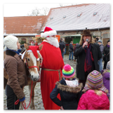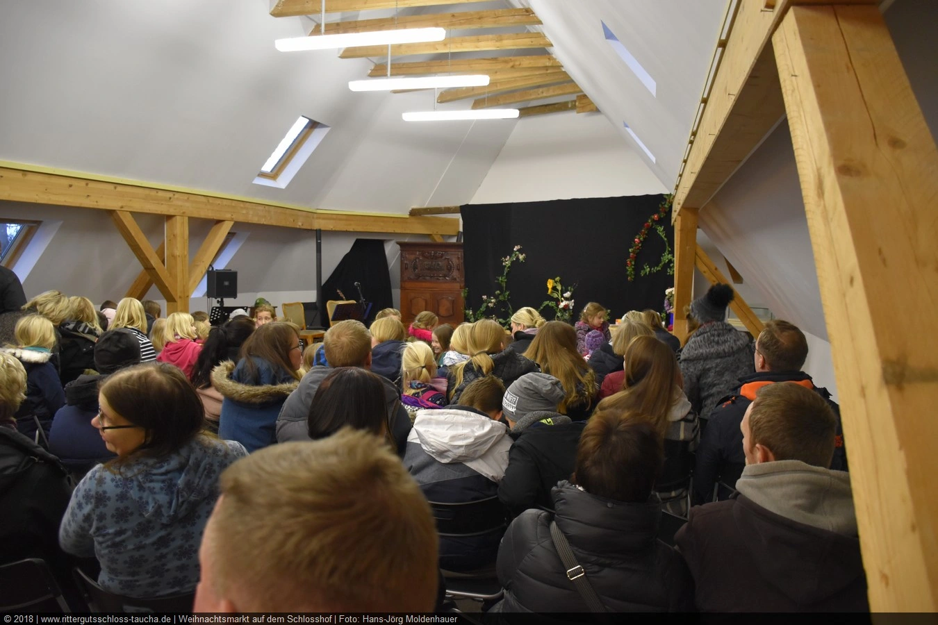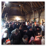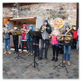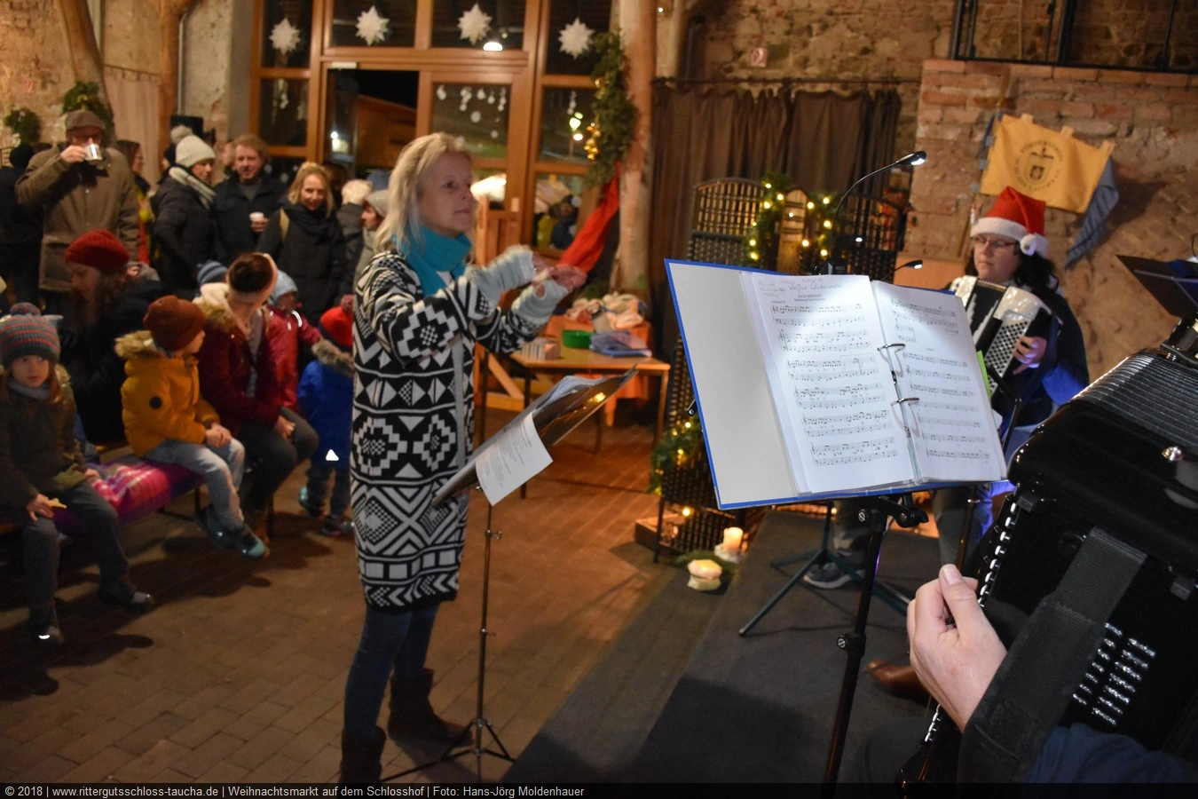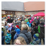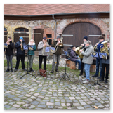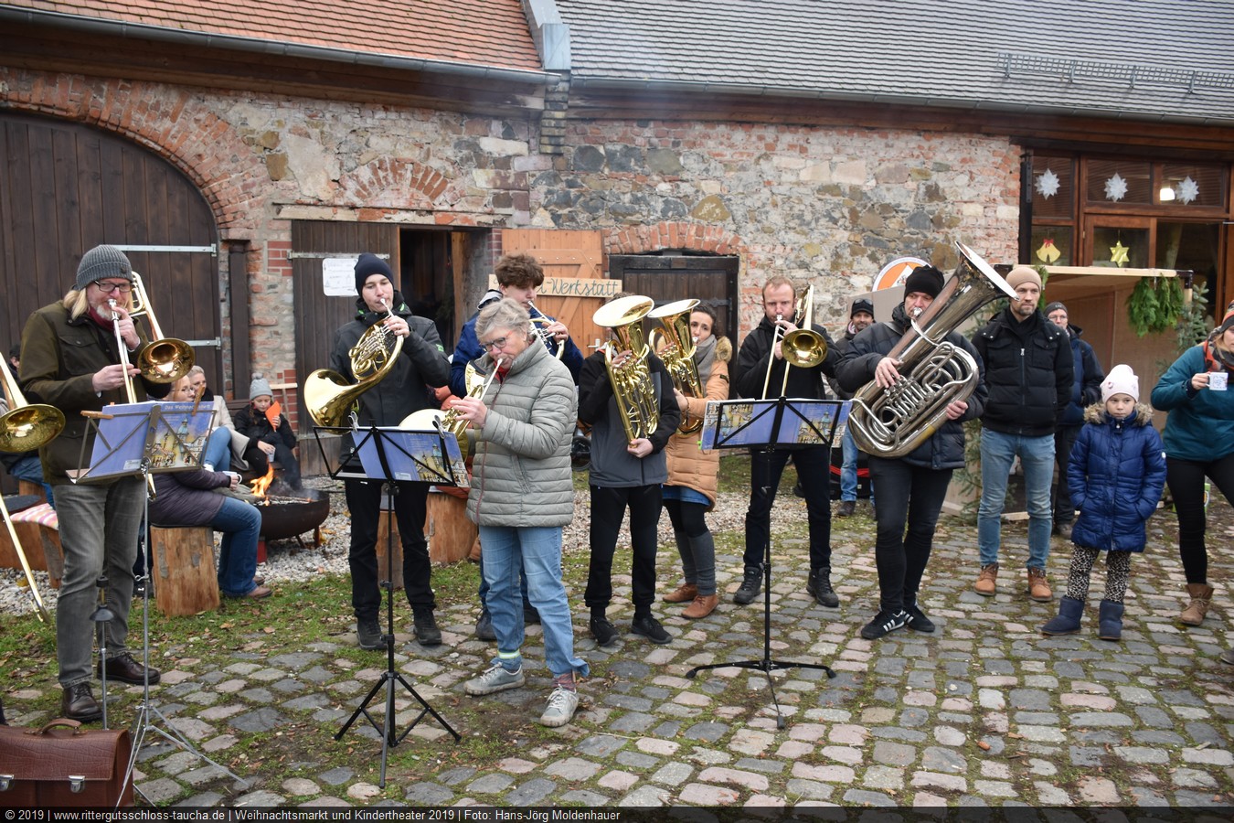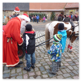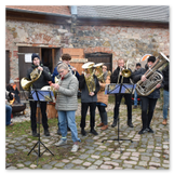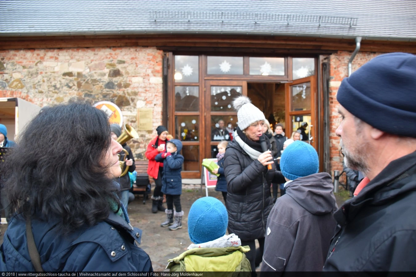 Die Zeit verging wie im Fluge, aber wir wollten unbedingt auch noch in die Weihnachts-scheune. Gleich beim Betreten war ich von der wunderbaren Dekoration beeindruckt. Die Liebe zum Detail, die freundliche Atmosphäre und die vielen Mitmach-Angebote für die Kinder – einfach toll! Da gab es kein „Abdudeln“ irgendwelcher Weihnachtsmusiken; hier wurde Stimmung live dargeboten. Begrüßt wurden wir vom Chor der Tauchaer Kirchgemeine; etwas später erklangen wunderbare weihnachtliche Melodien von Musikern der Kreismusikschule auf Trompeten, Posaunen und Hörnern.