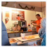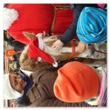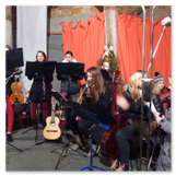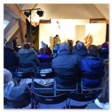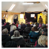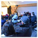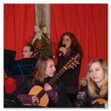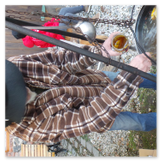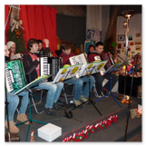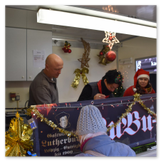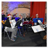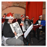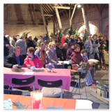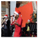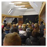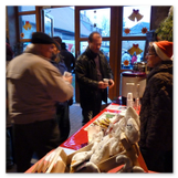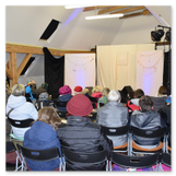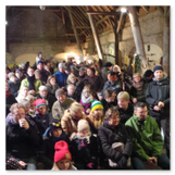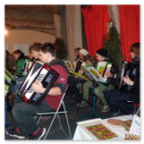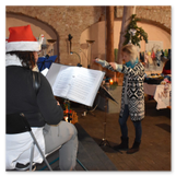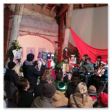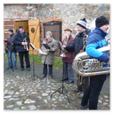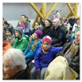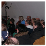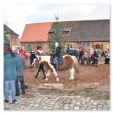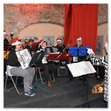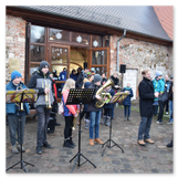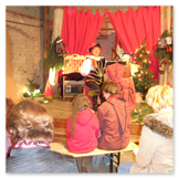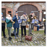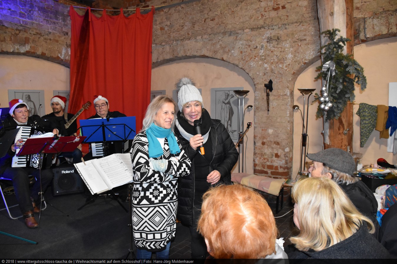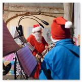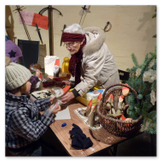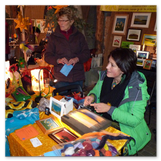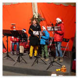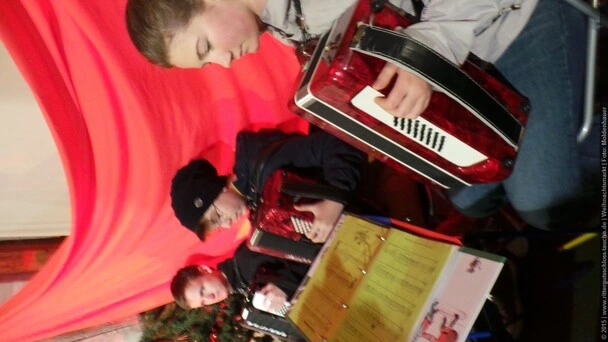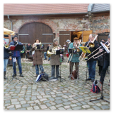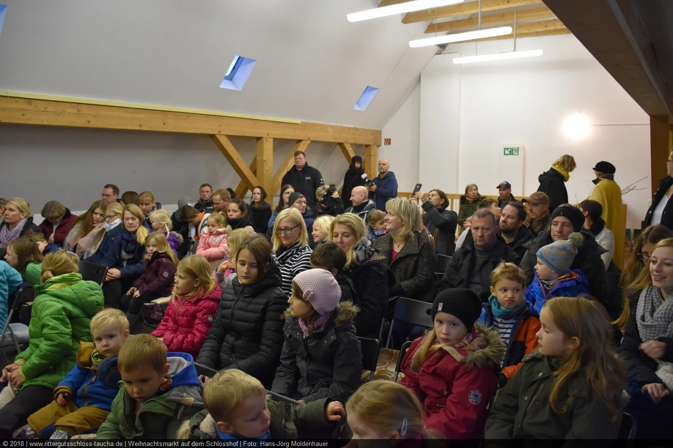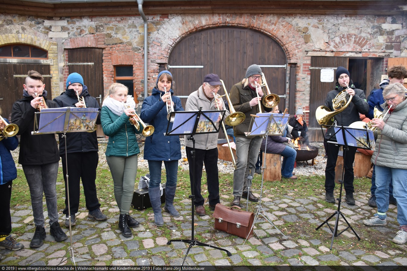 Die Zeit verging wie im Fluge, aber wir wollten unbedingt auch noch in die Weihnachts-scheune. Gleich beim Betreten war ich von der wunderbaren Dekoration beeindruckt. Die Liebe zum Detail, die freundliche Atmosphäre und die vielen Mitmach-Angebote für die Kinder – einfach toll! Da gab es kein „Abdudeln“ irgendwelcher Weihnachtsmusiken; hier wurde Stimmung live dargeboten. Begrüßt wurden wir vom Chor der Tauchaer Kirchgemeine; etwas später erklangen wunderbare weihnachtliche Melodien von Musikern der Kreismusikschule auf Trompeten, Posaunen und Hörnern.
