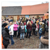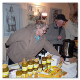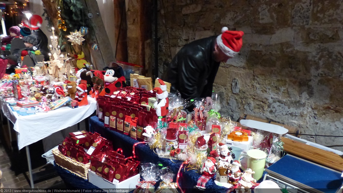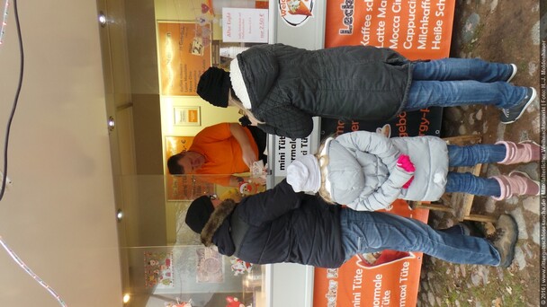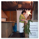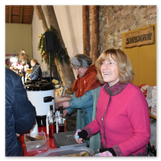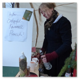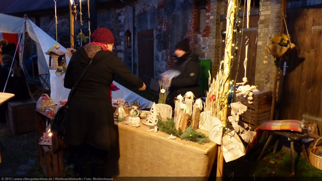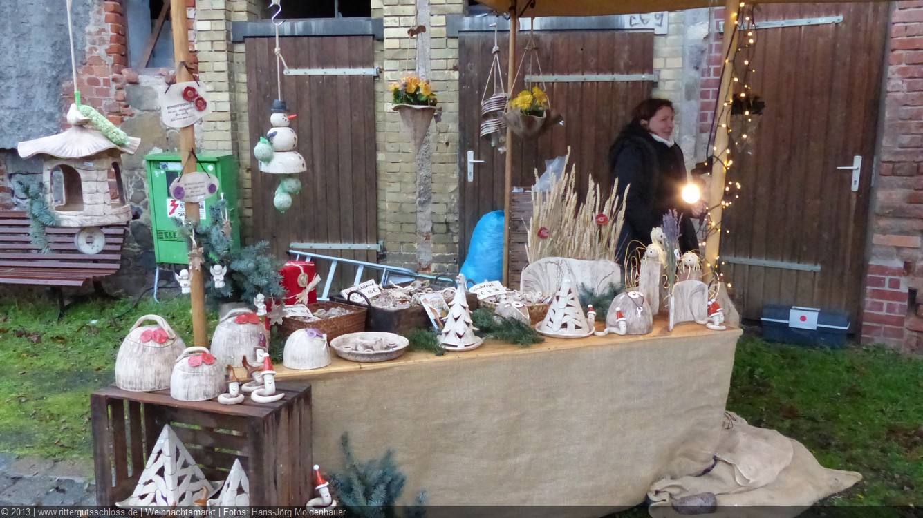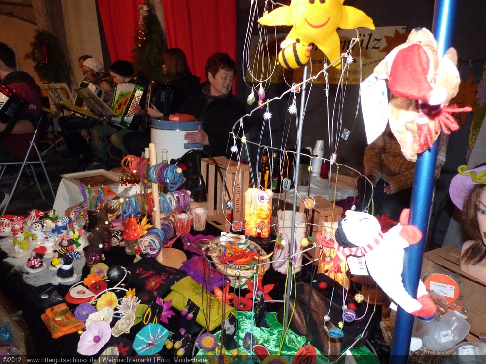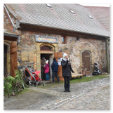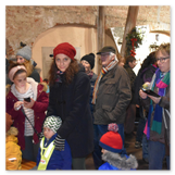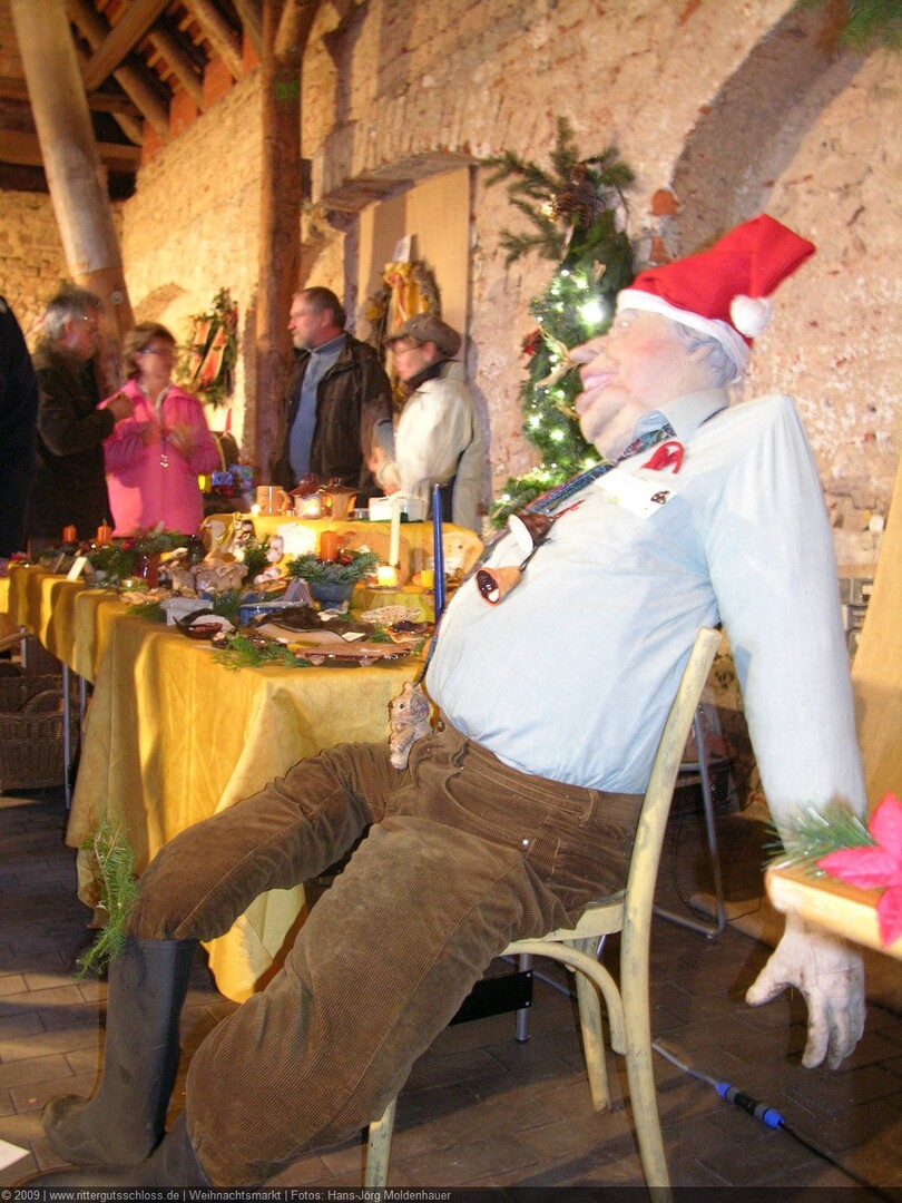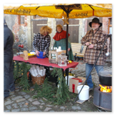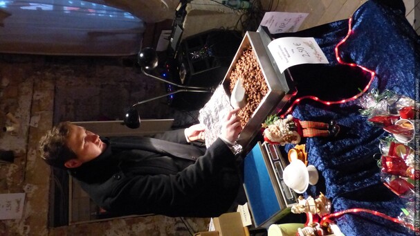Weiter ging´s zum Bastelstand. Während meine Enkelin eine Meisenglocke für unsere gefiederten Wintergäste im Garten herstellte, schaute ich mich an den zahlreichen Ständen in der Scheune um. Etwas fiel mir sofort auf: Die Freundlichkeit der Händler. Ob Strickwaren für den Winter, leckerer Honig aus einheimischer Produktion, ob gebrannte Mandeln oder Fettbemmchen aus der Schlossküche, ob handgezogene Kerzen oder Holzspielzeug aus dem Erzgebirge – alles war ansprechend dekoriert und wurde nett angeboten.