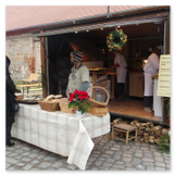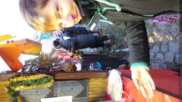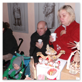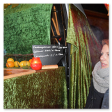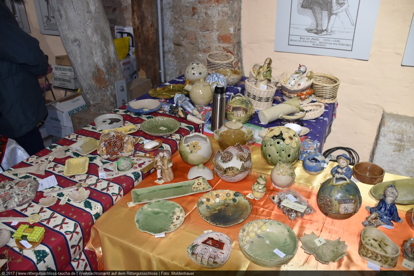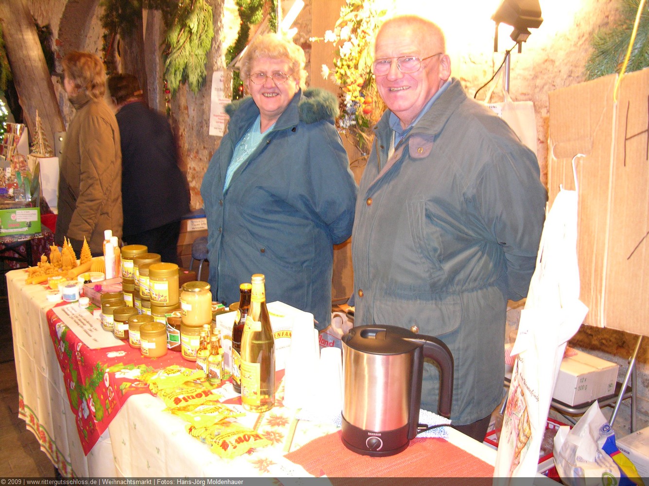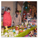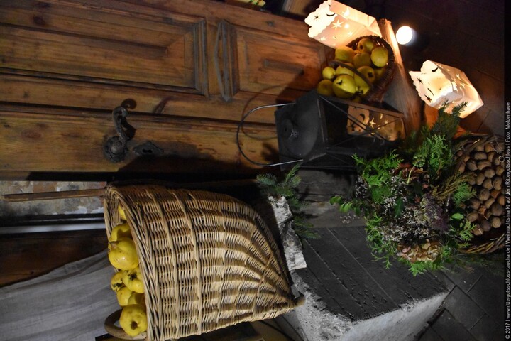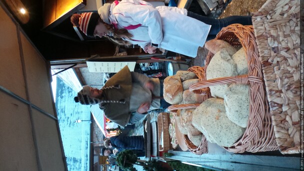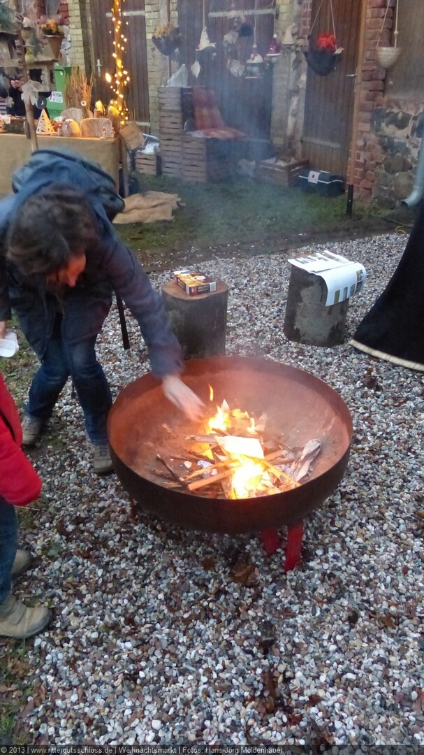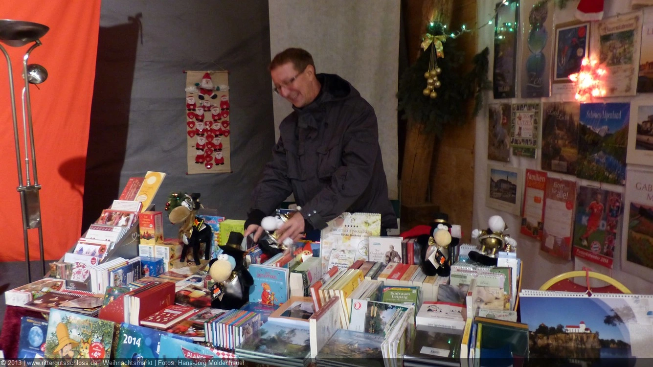 Weiter ging´s zum Bastelstand. Während meine Enkelin eine Meisenglocke für unsere gefiederten Wintergäste im Garten herstellte, schaute ich mich an den zahlreichen Ständen in der Scheune um. Etwas fiel mir sofort auf: Die Freundlichkeit der Händler. Ob Strickwaren für den Winter, leckerer Honig aus einheimischer Produktion, ob gebrannte Mandeln oder Fettbemmchen aus der Schlossküche, ob handgezogene Kerzen oder Holzspielzeug aus dem Erzgebirge – alles war ansprechend dekoriert und wurde nett angeboten.