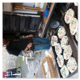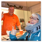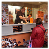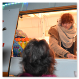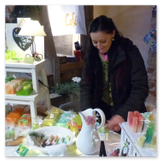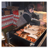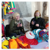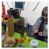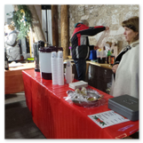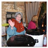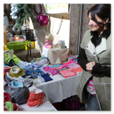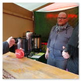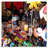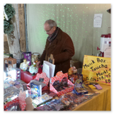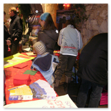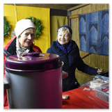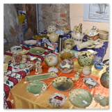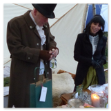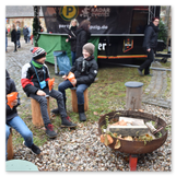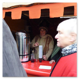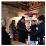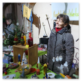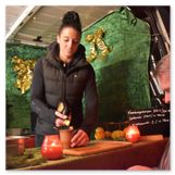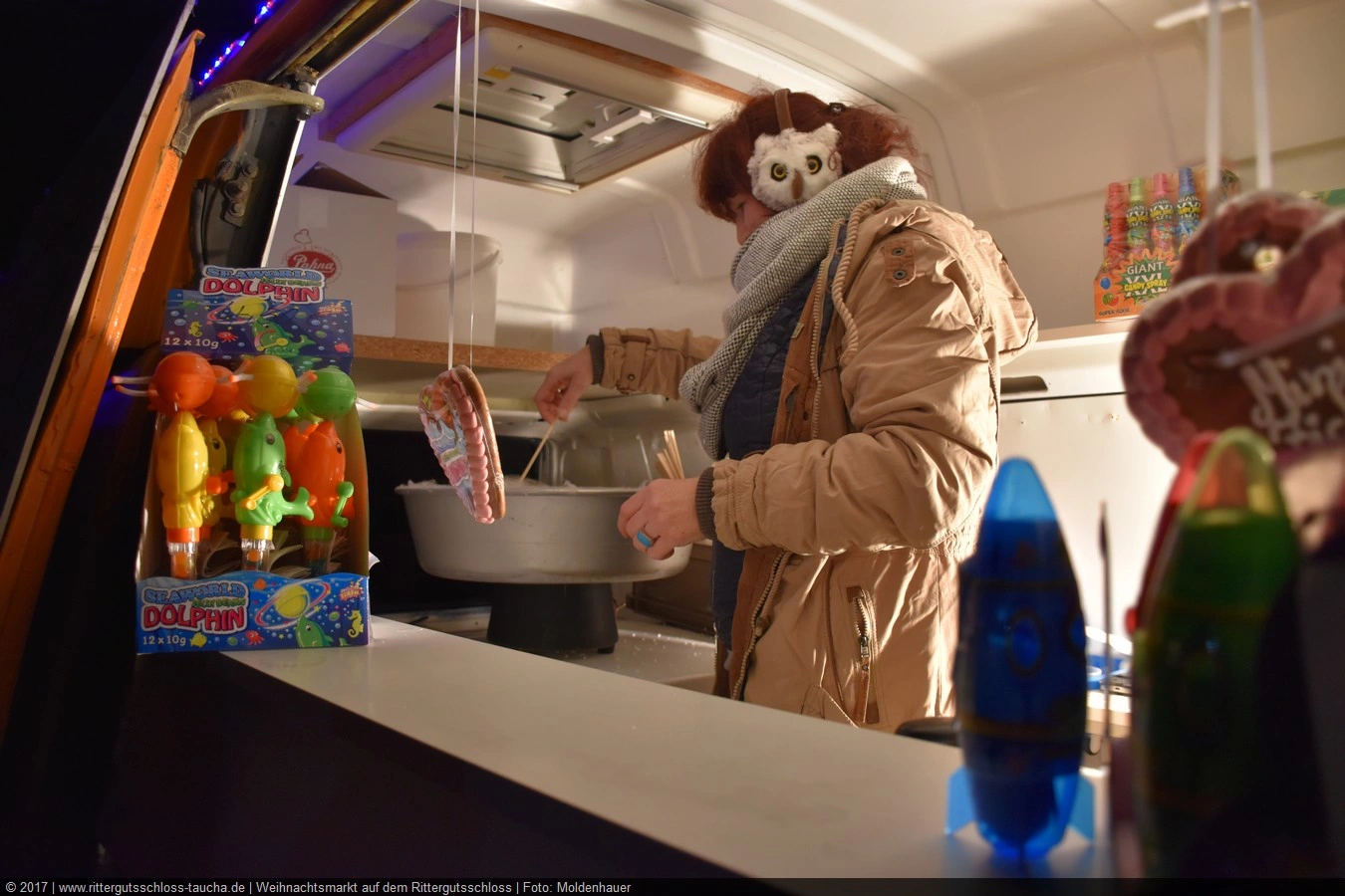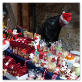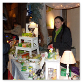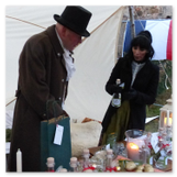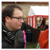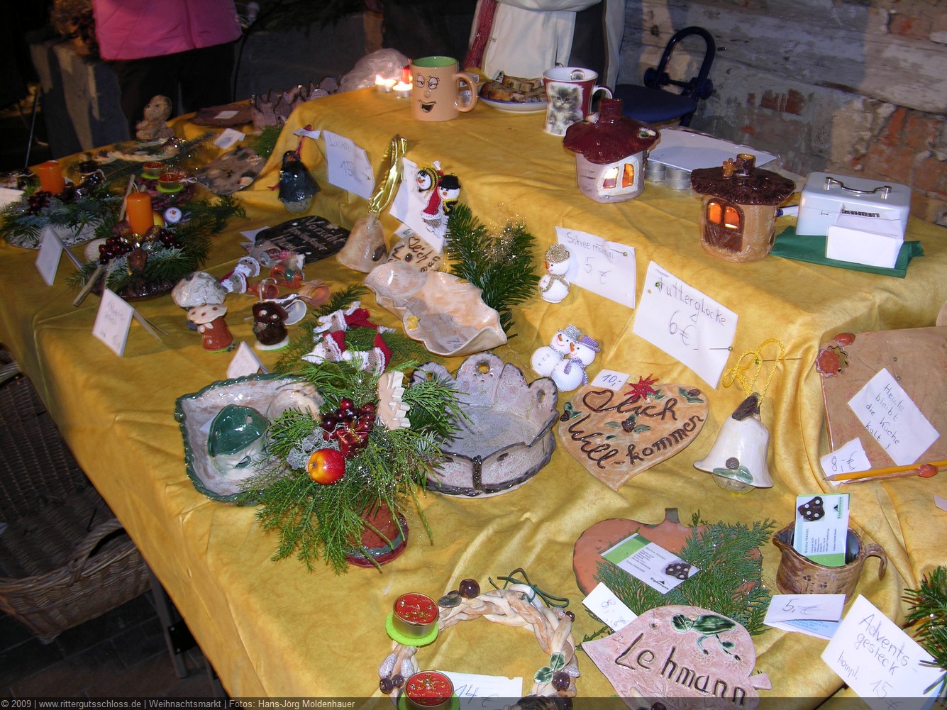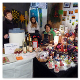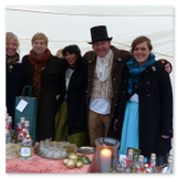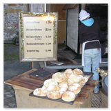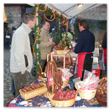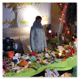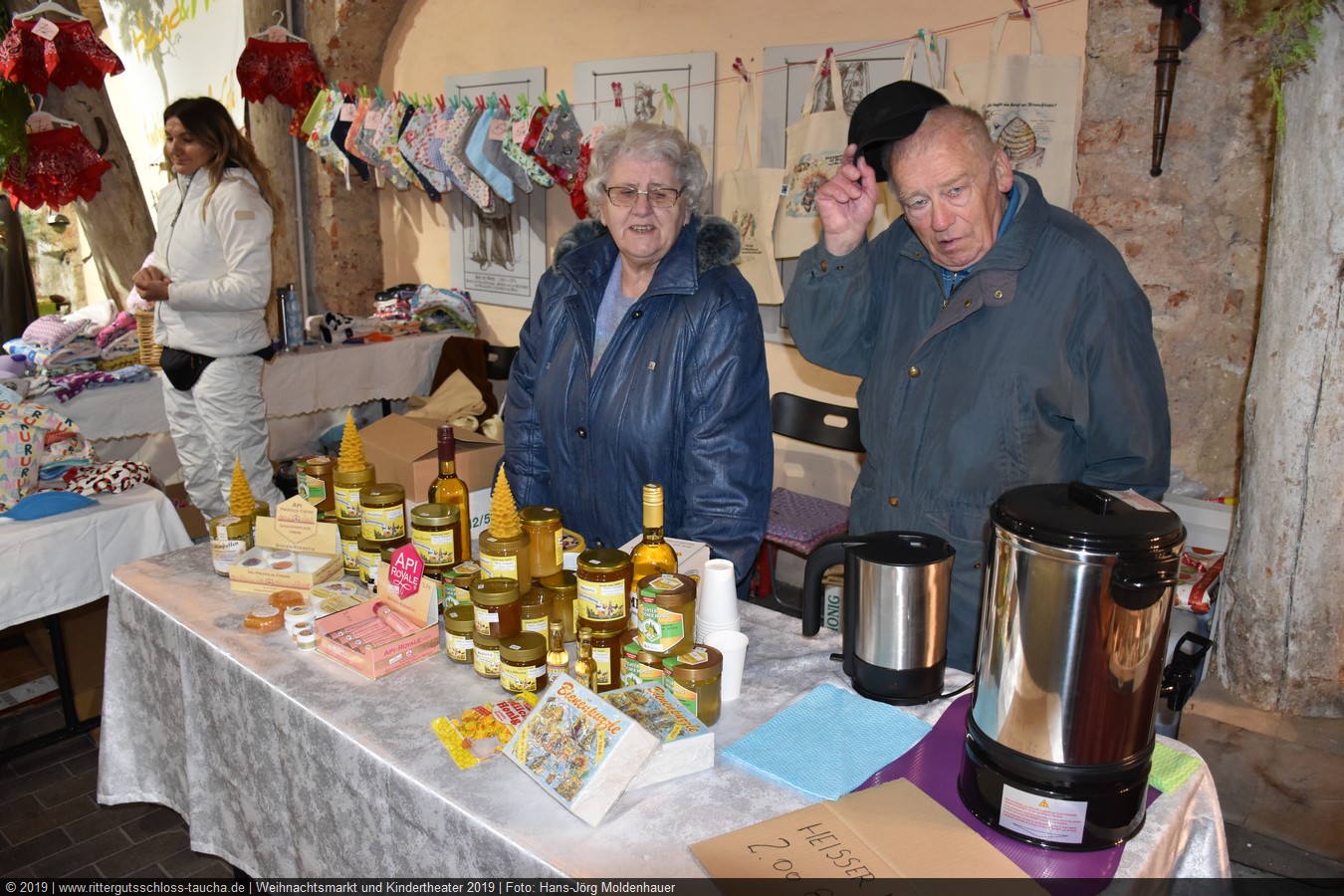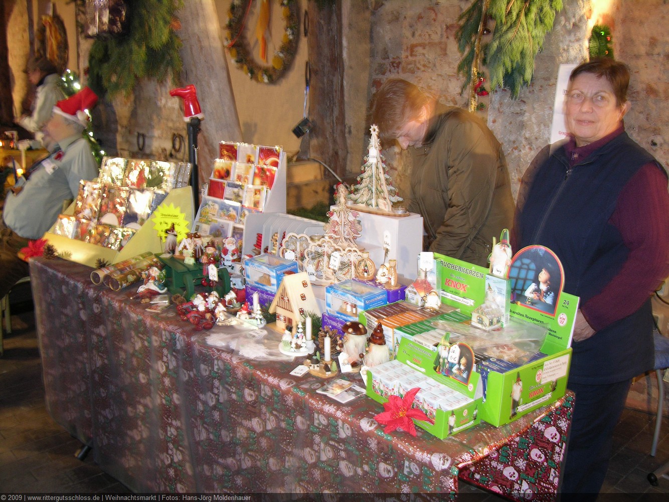Weiter ging´s zum Bastelstand. Während meine Enkelin eine Meisenglocke für unsere gefiederten Wintergäste im Garten herstellte, schaute ich mich an den zahlreichen Ständen in der Scheune um. Etwas fiel mir sofort auf: Die Freundlichkeit der Händler. Ob Strickwaren für den Winter, leckerer Honig aus einheimischer Produktion, ob gebrannte Mandeln oder Fettbemmchen aus der Schlossküche, ob handgezogene Kerzen oder Holzspielzeug aus dem Erzgebirge – alles war ansprechend dekoriert und wurde nett angeboten.