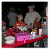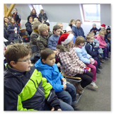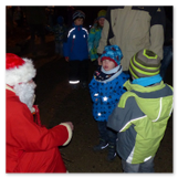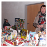 Gerade schickten wir uns an zu gehen, aber da wurde noch ein weiterer Höhepunkt des Weihnachtsmarktes angekündigt: Die Prämierung der besten Adventskalender. Viele Kinder mit ihren Eltern hatten sich schon versammelt. Wir erfuhren, dass es schon Wochen vor dem Weihnachtsmarkt einen Bastelausruf gegeben habe „Wer bastelt den schönsten Adventskalender“. Es waren wirklich wunderschöne Arbeiten entstanden, Einzelarbeiten, aber auch Kalender, die Kindergarten- und Hortgruppen als Gemeinschaftsarbeiten eingereicht hatten. Und wer bekam nun den 1. Preis? Keiner! Alle Kalenderbastler wurden mit kleinen Geschenken bedacht und durften natürlich ihre Kalender auch wieder mitnehmen, um sich die Tage bis zum Weihnachtsfest zu verkürzen. Ich empfand das als eine sehr schöne Idee.