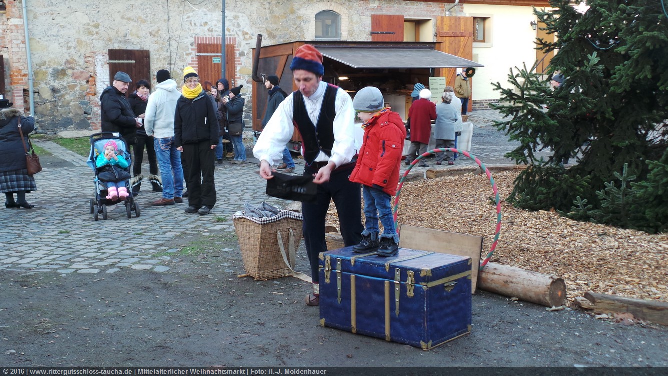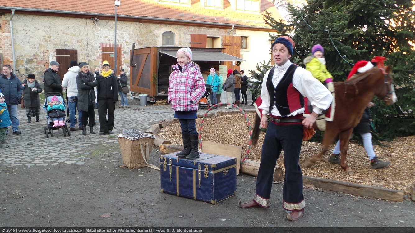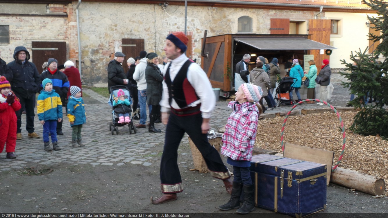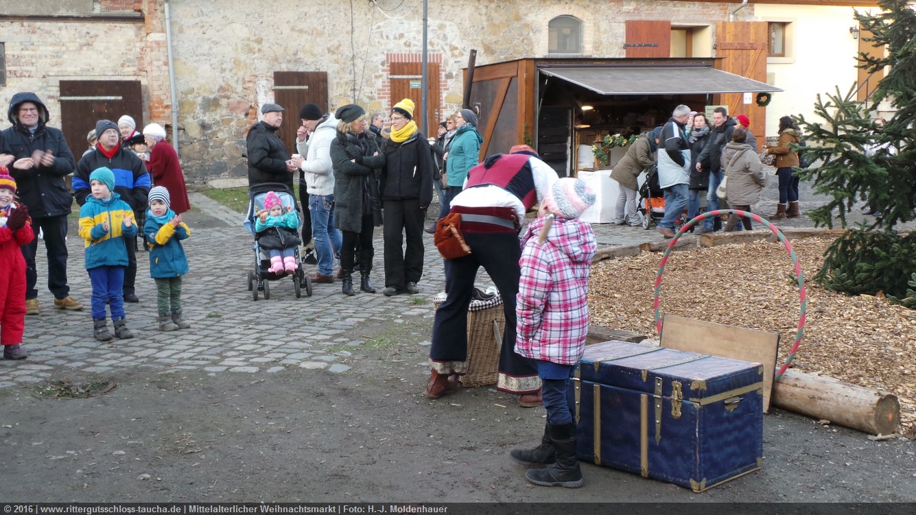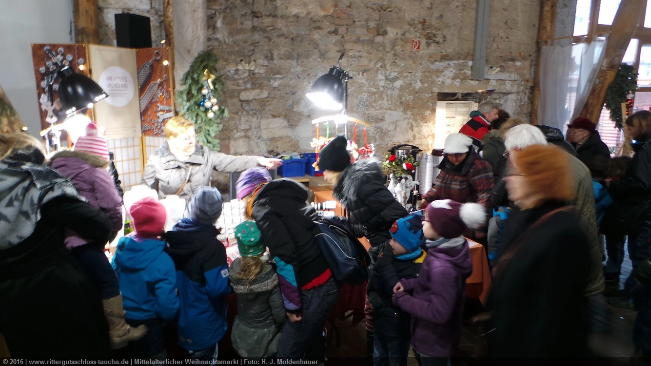 Schon zum dritten Mal fuhr ich mit meiner Enkelin Maria am 1. Adventsonntag zum Weihnachtsmarkt auf Schloss Taucha. Ich bin stets von neuem beeindruckt, mit wieviel Liebe dieser Weihnachtsmarkt ausgerichtet wird; leider findet er nur an einem Wochenende statt.