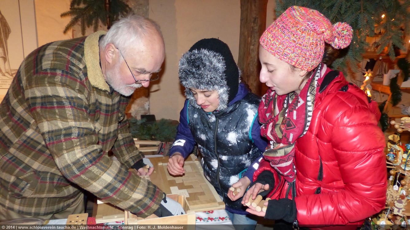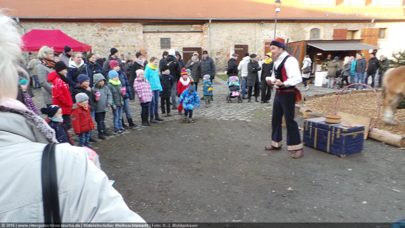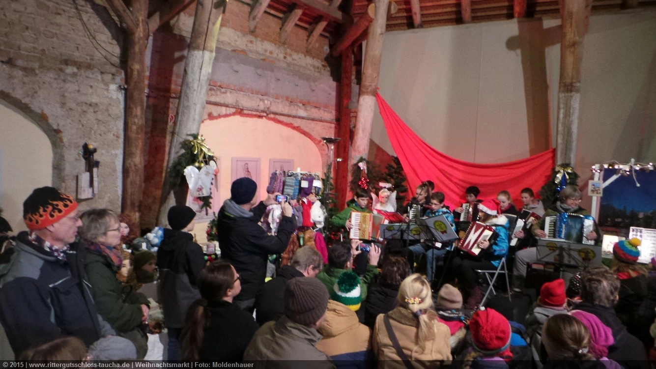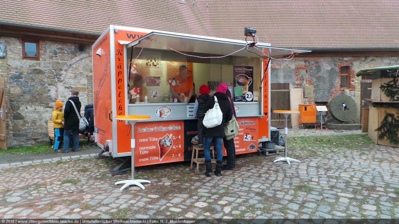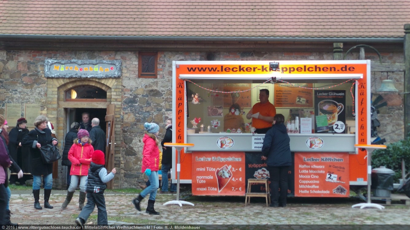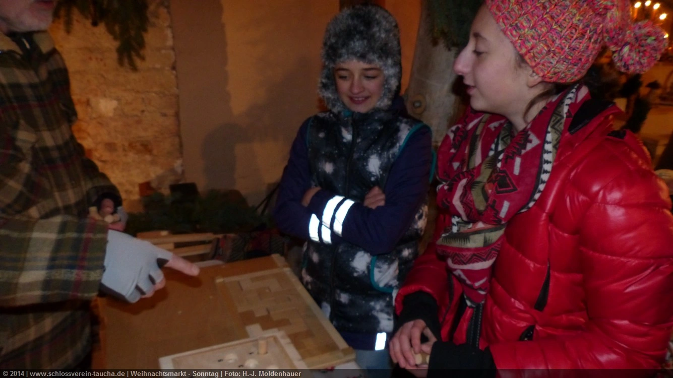 Schon zum dritten Mal fuhr ich mit meiner Enkelin Maria am 1. Adventsonntag zum Weihnachtsmarkt auf Schloss Taucha. Ich bin stets von neuem beeindruckt, mit wieviel Liebe dieser Weihnachtsmarkt ausgerichtet wird; leider findet er nur an einem Wochenende statt.