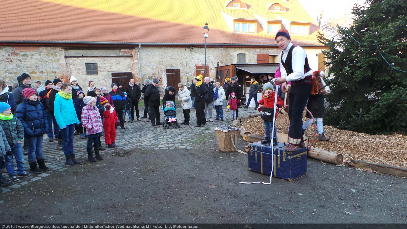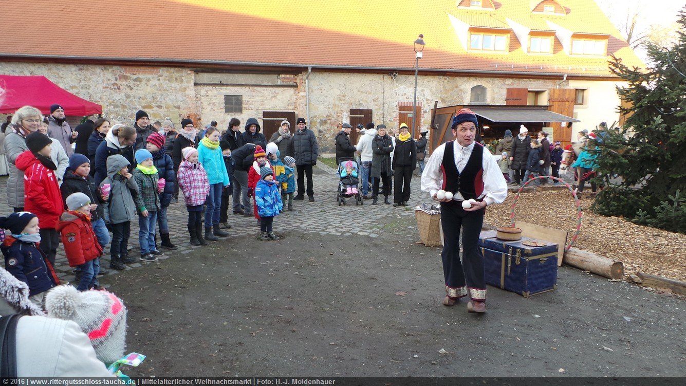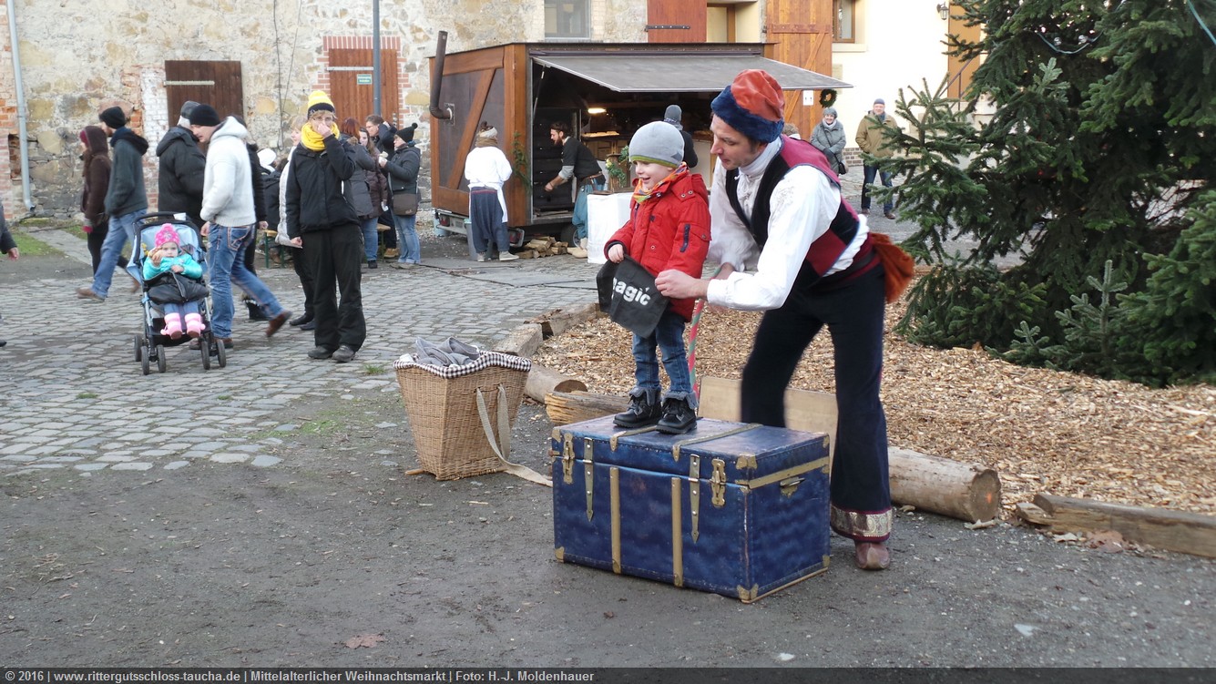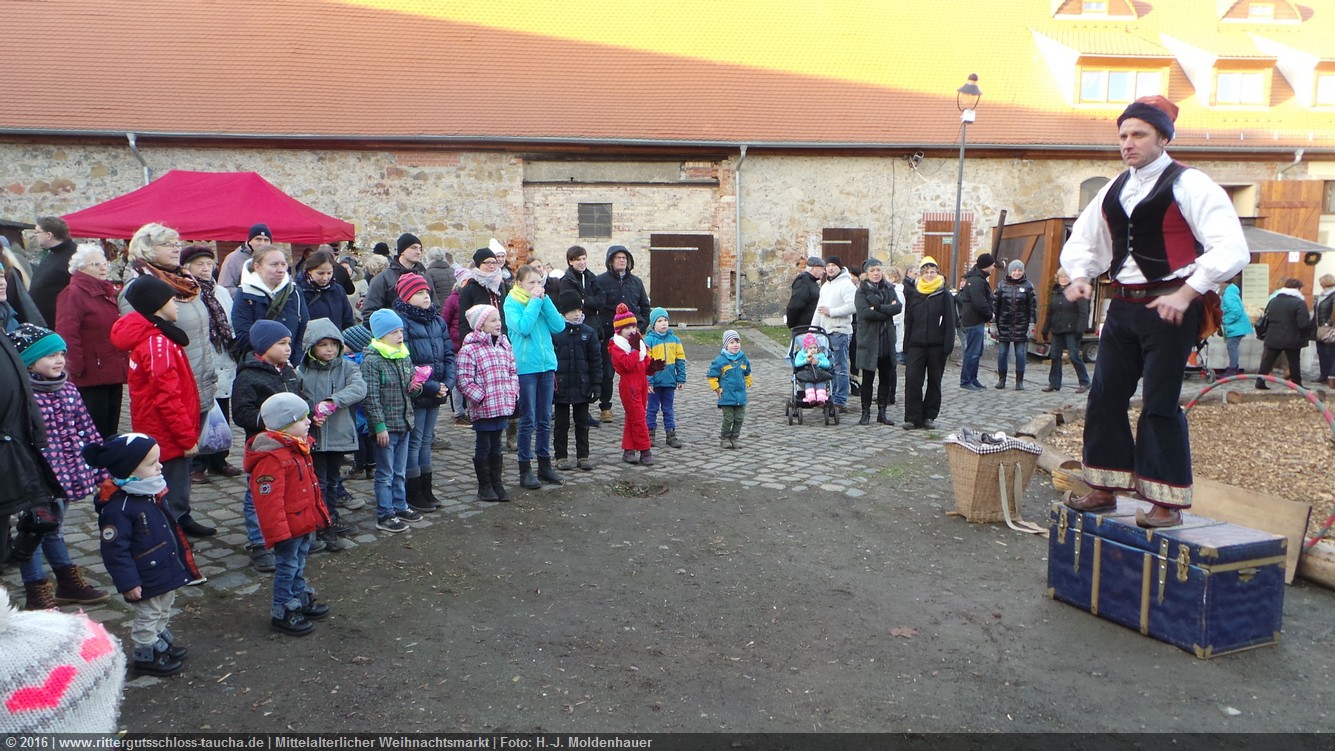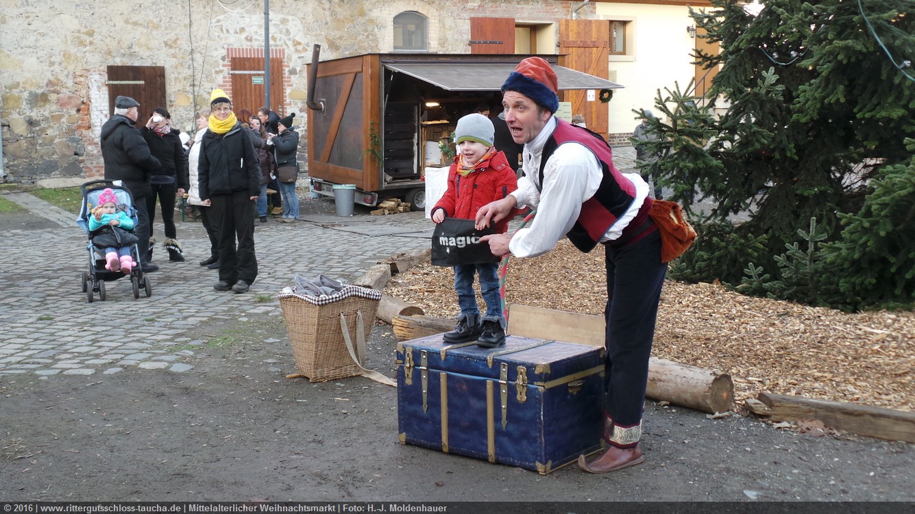 Schon zum dritten Mal fuhr ich mit meiner Enkelin Maria am 1. Adventsonntag zum Weihnachtsmarkt auf Schloss Taucha. Ich bin stets von neuem beeindruckt, mit wieviel Liebe dieser Weihnachtsmarkt ausgerichtet wird; leider findet er nur an einem Wochenende statt.