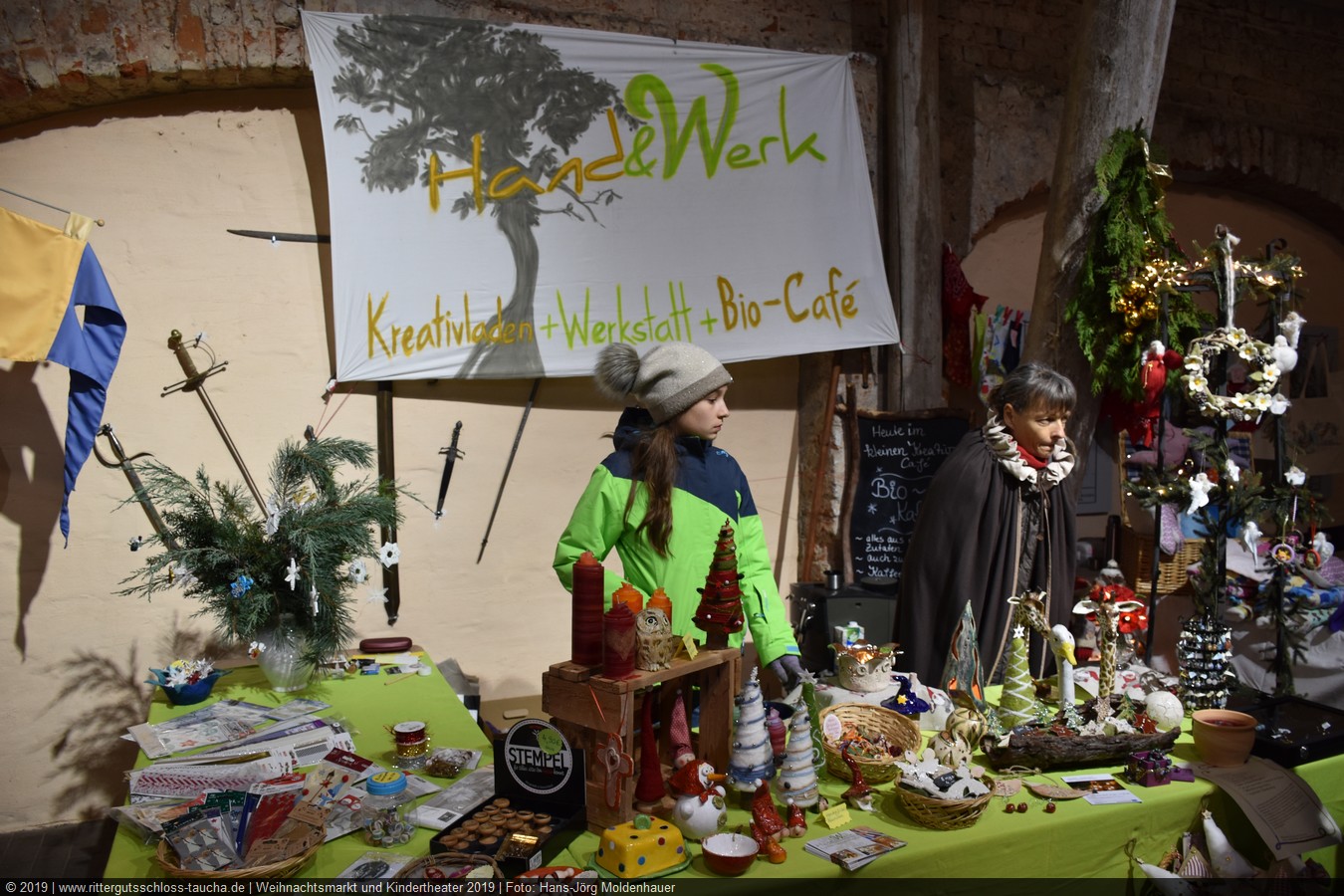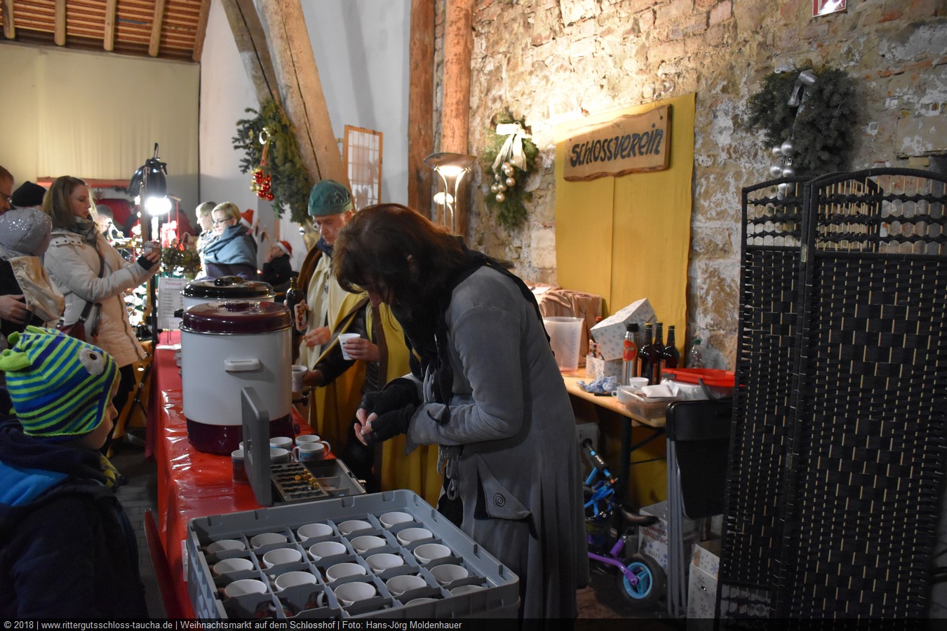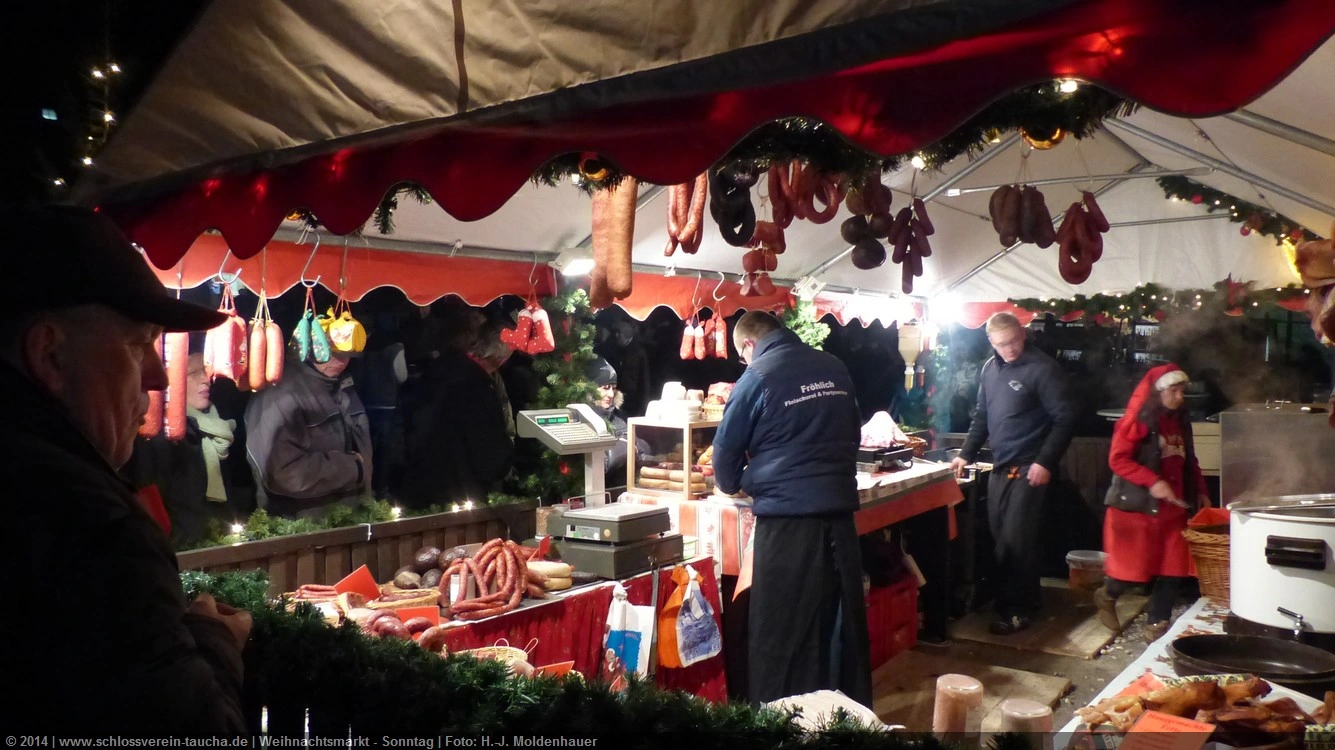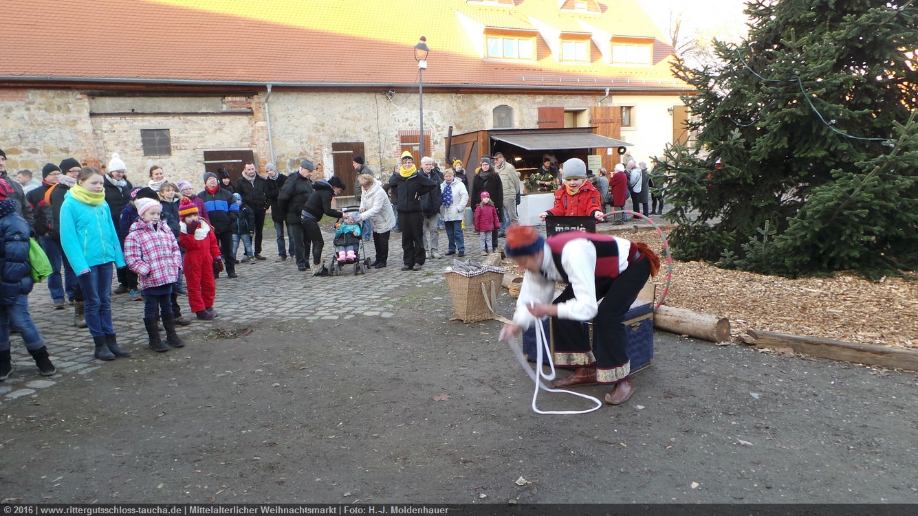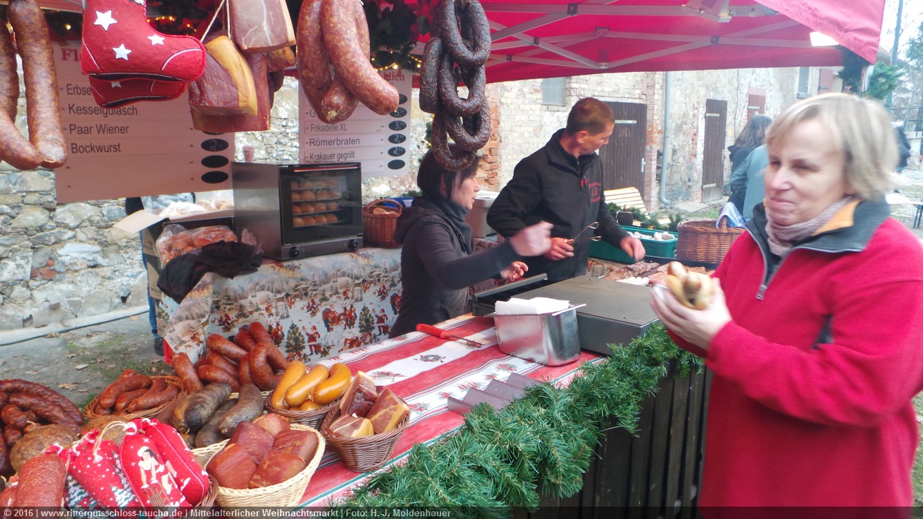 Schon zum dritten Mal fuhr ich mit meiner Enkelin Maria am 1. Adventsonntag zum Weihnachtsmarkt auf Schloss Taucha. Ich bin stets von neuem beeindruckt, mit wieviel Liebe dieser Weihnachtsmarkt ausgerichtet wird; leider findet er nur an einem Wochenende statt.