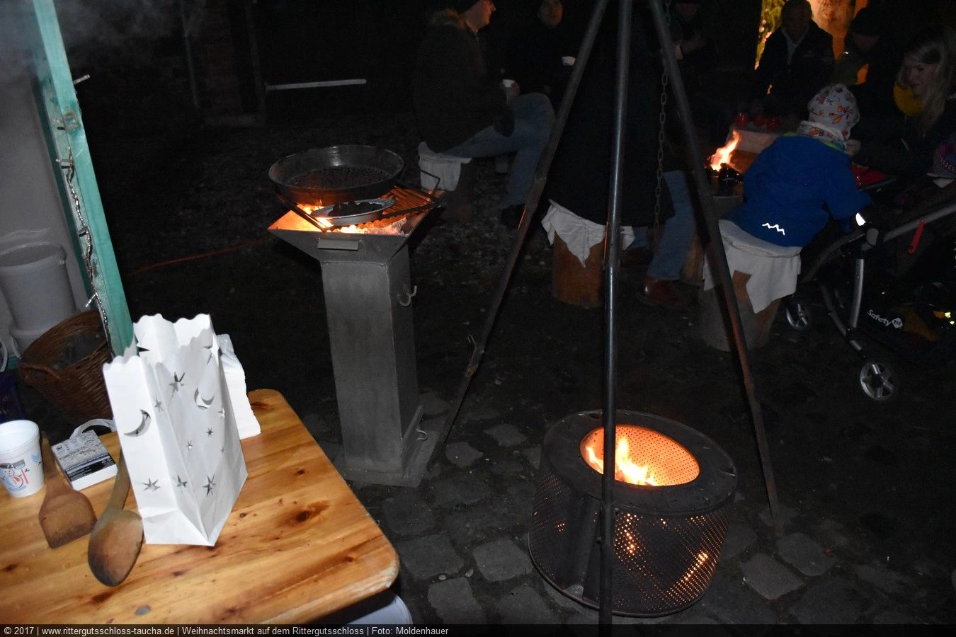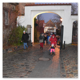 Es war dunkel geworden. Und während Maria noch einen letzten Gang über den Schlosshof machte, sprach ich mit einer der netten Frauen vom Förderverein, natürlich im mittelalterlichen Gewand einer Marktfrau. Von ihr erfuhr ich, dass das Team des Weihnachtsmarktes alljährlich schon im August mit den ersten Vorbereitungen starte und alles in ehrenamtlicher Arbeit passiere. Meine Hochachtung stieg und für mich steht fest, dass ich den Termin des mittelalterlichen Weihnachtsmarktes 2015 auf Schloss Taucha schon heute in meine Terminplanung aufnehmen werde – nicht allein meiner Enkelin zuliebe.