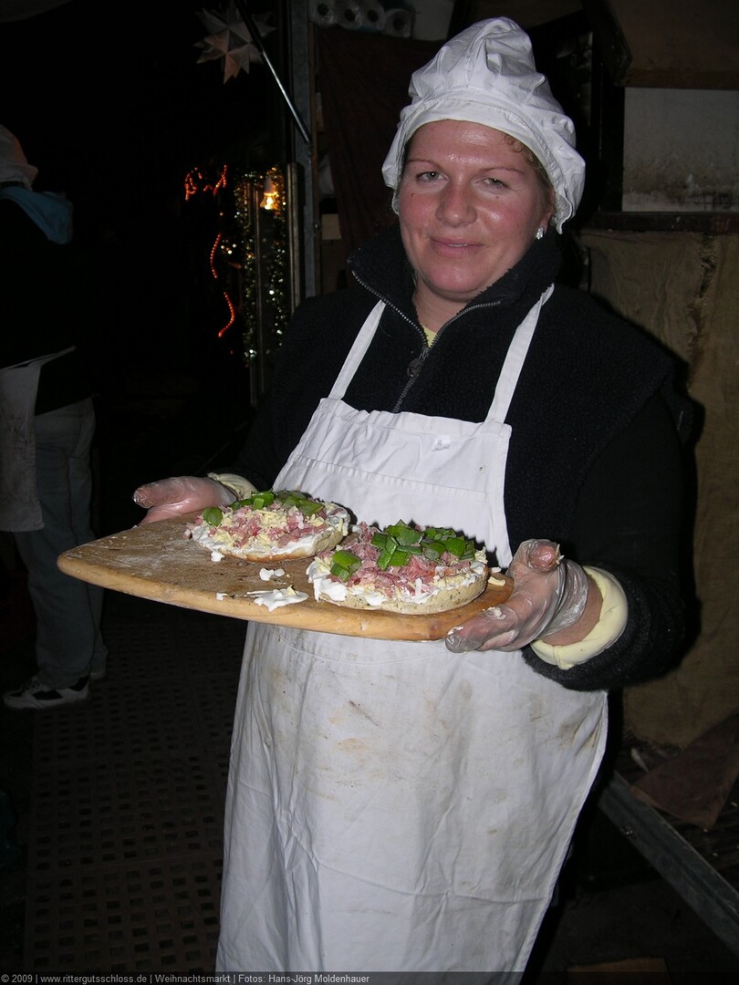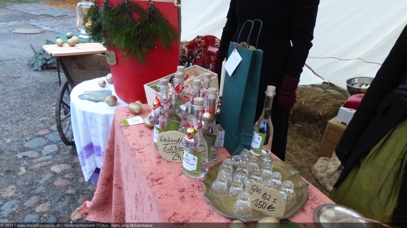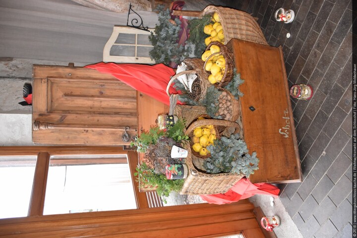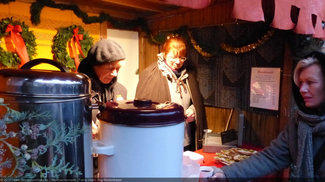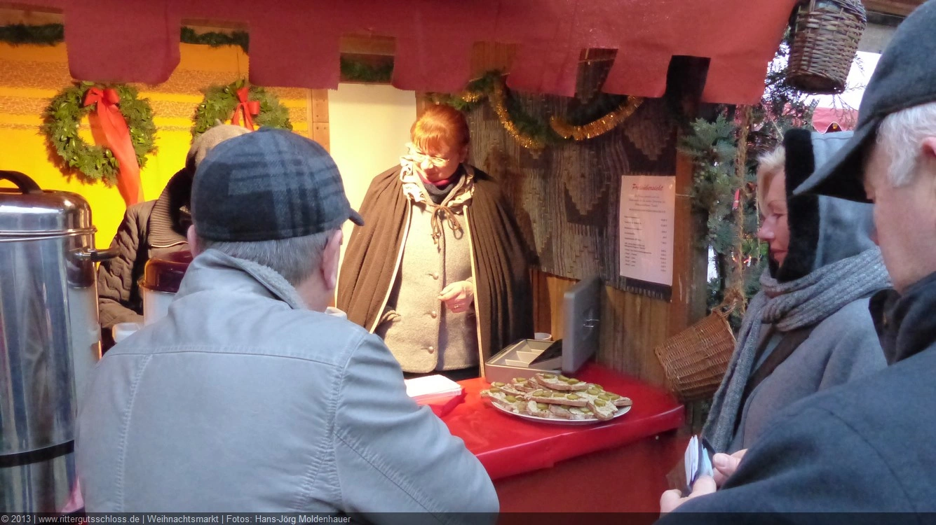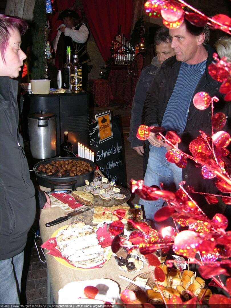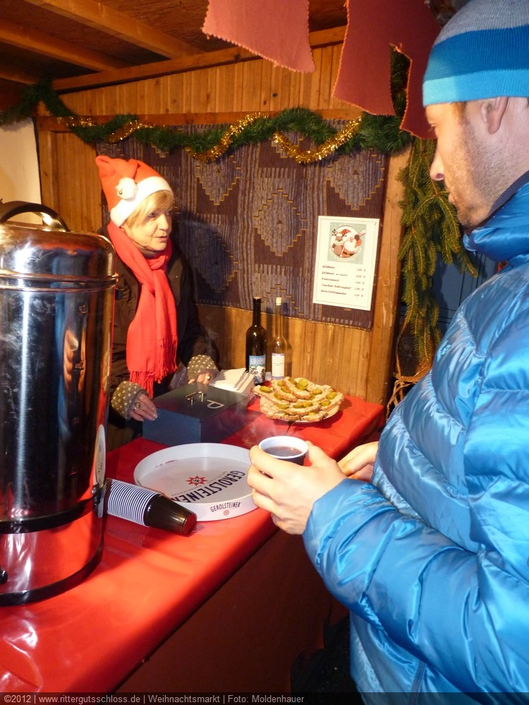 Maria begab sich sofort auf Entdeckungsreise. Was gab´s da alles zu entdecken? Ein Streichelzoo mit Schäfchen und Ziegen, Ponyreiten rund um den Weihnachtsbaum mitten auf dem Schlosshof, in den Eingängen zu den einzelnen Gebäuden ganz zauberhafte Märchenbilder mit lebensgroßen Figuren und über allem schwebte der typisch Duft von frisch Gebackenem aus der Schlossbäckerei. Natürlich fehlte auch Geräuchertes von Hoffleischer ebenso wenig wie die unvermeidlichen alkoholischen Getränke. Die Feuerzangenbowle – einfach köstlich.