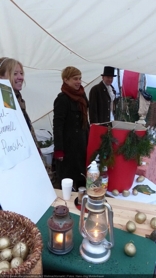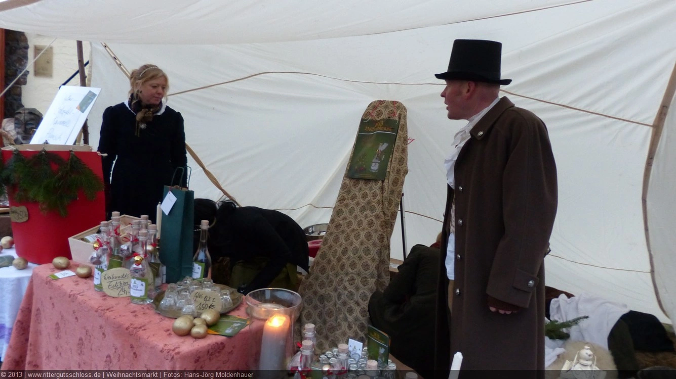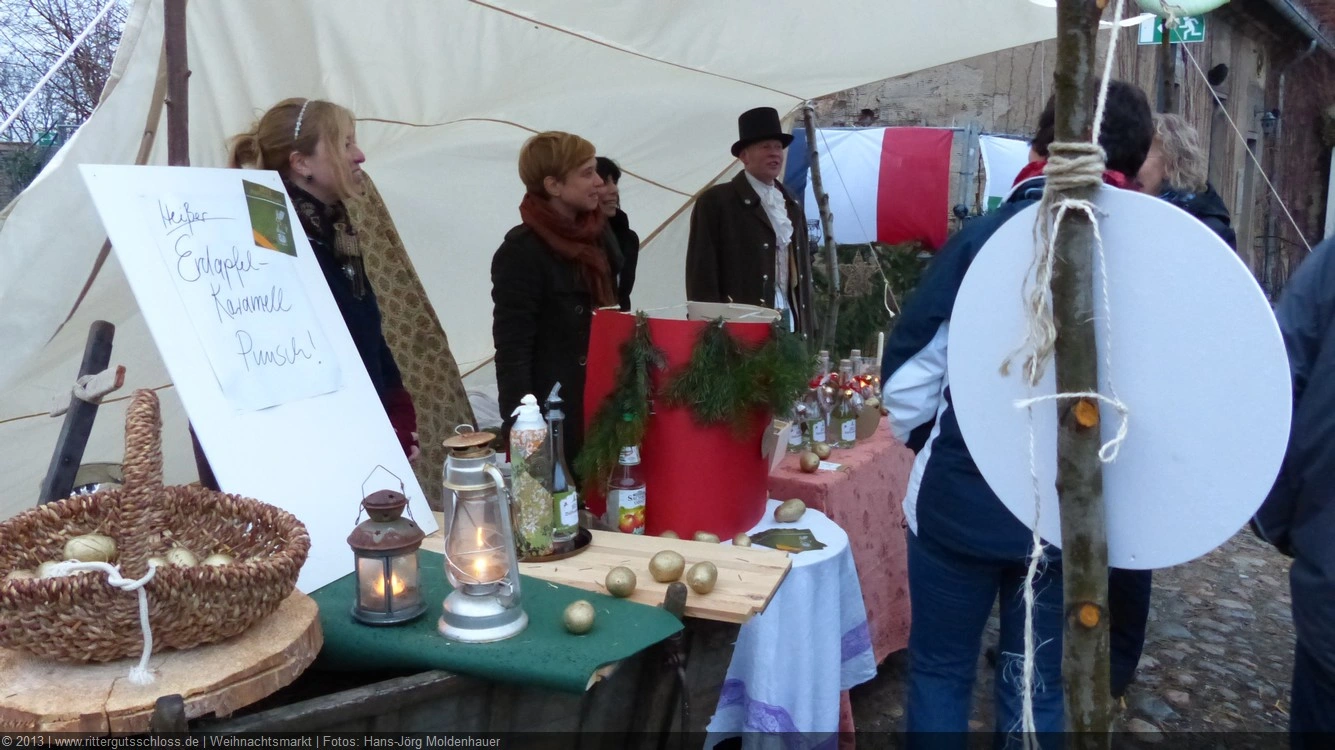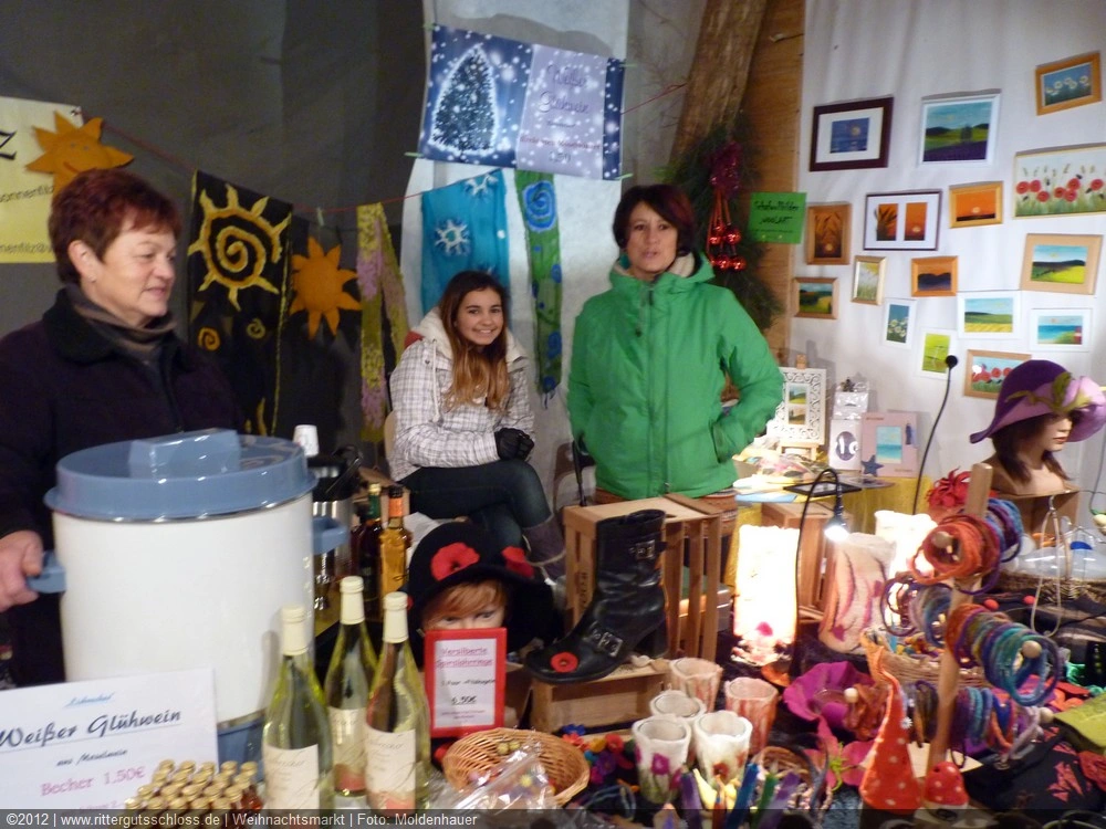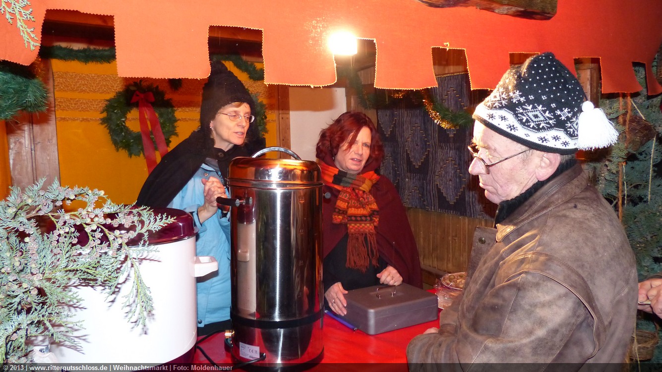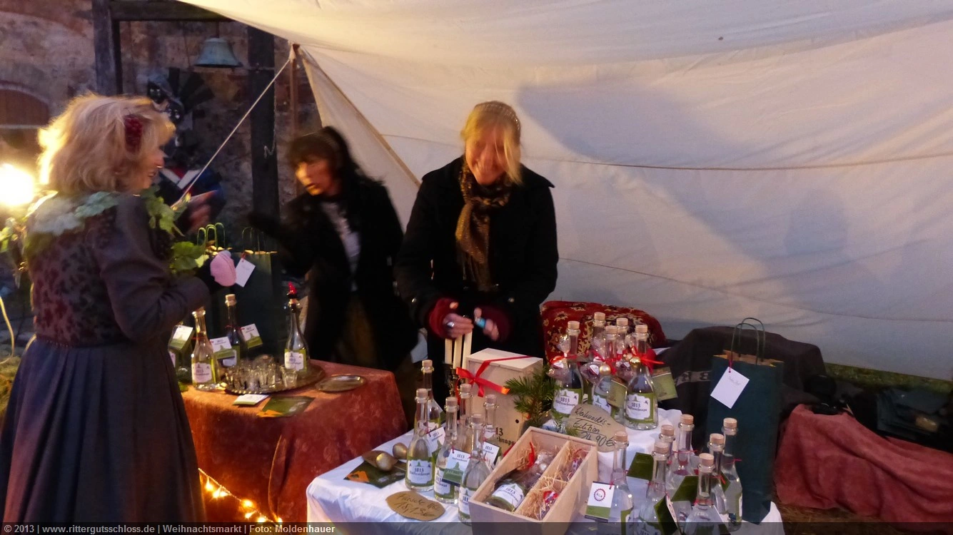 Maria begab sich sofort auf Entdeckungsreise. Was gab´s da alles zu entdecken? Ein Streichelzoo mit Schäfchen und Ziegen, Ponyreiten rund um den Weihnachtsbaum mitten auf dem Schlosshof, in den Eingängen zu den einzelnen Gebäuden ganz zauberhafte Märchenbilder mit lebensgroßen Figuren und über allem schwebte der typisch Duft von frisch Gebackenem aus der Schlossbäckerei. Natürlich fehlte auch Geräuchertes von Hoffleischer ebenso wenig wie die unvermeidlichen alkoholischen Getränke. Die Feuerzangenbowle – einfach köstlich.