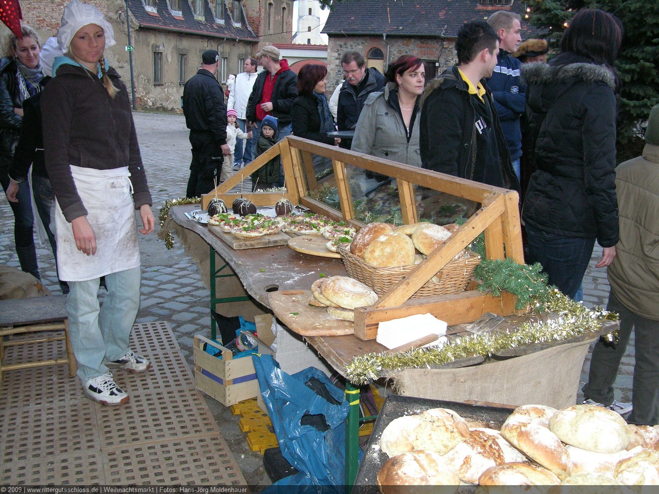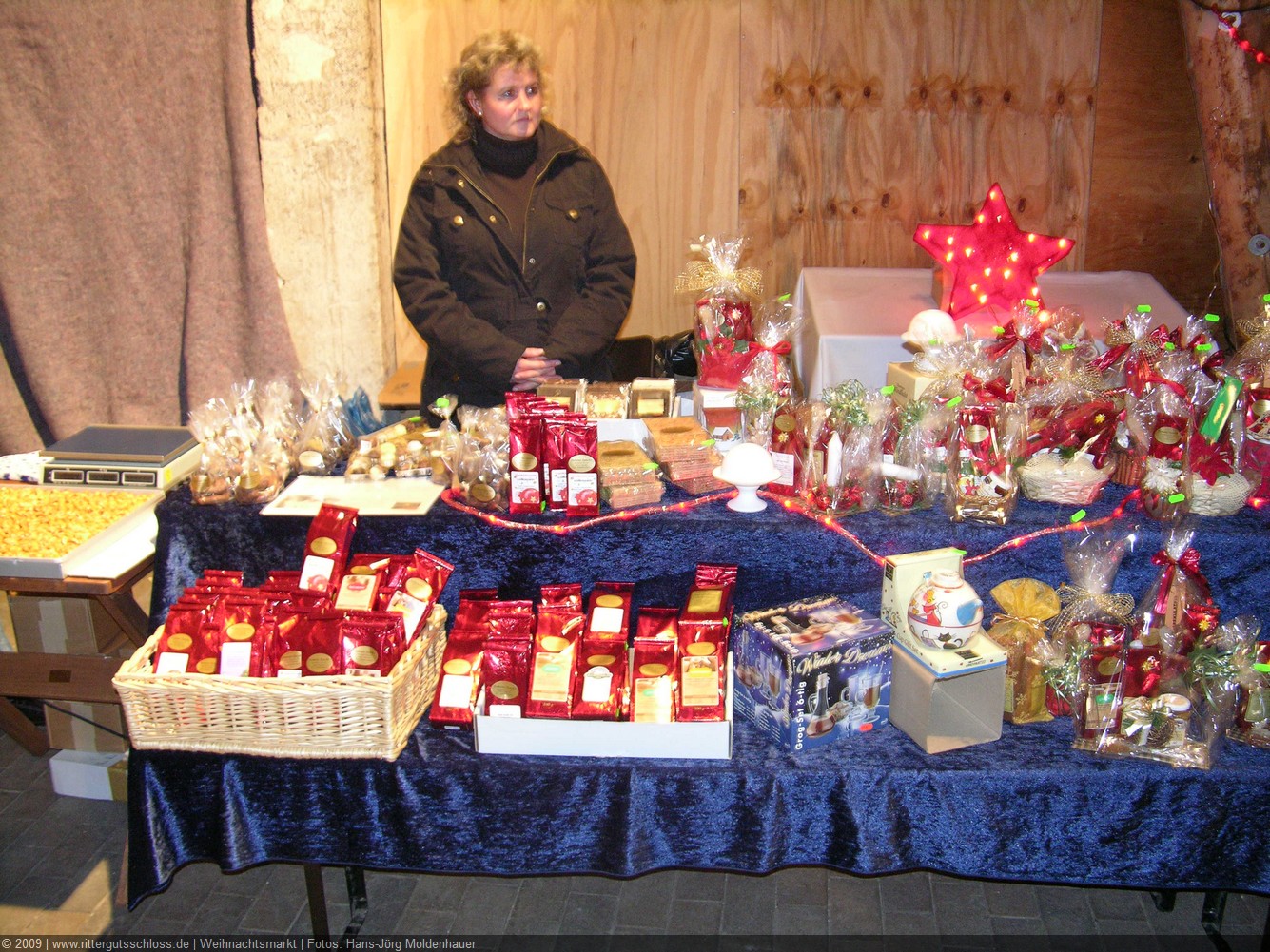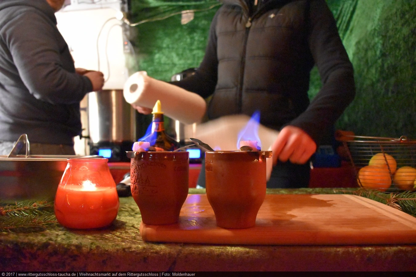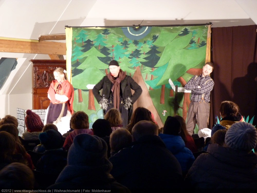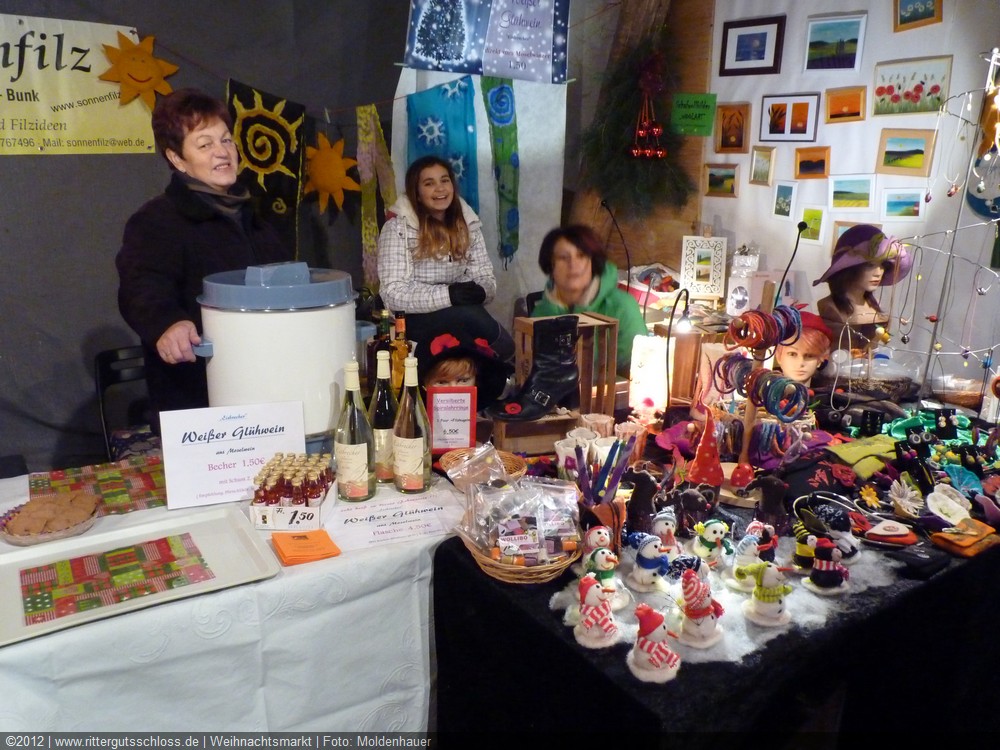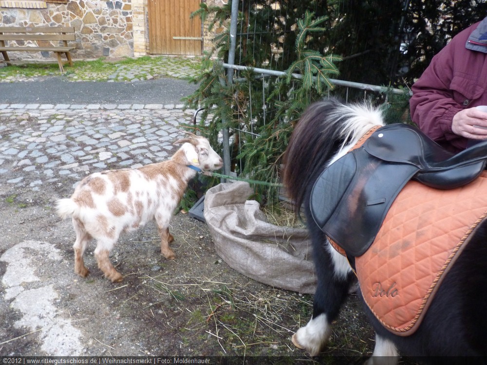 Maria begab sich sofort auf Entdeckungsreise. Was gab´s da alles zu entdecken? Ein Streichelzoo mit Schäfchen und Ziegen, Ponyreiten rund um den Weihnachtsbaum mitten auf dem Schlosshof, in den Eingängen zu den einzelnen Gebäuden ganz zauberhafte Märchenbilder mit lebensgroßen Figuren und über allem schwebte der typisch Duft von frisch Gebackenem aus der Schlossbäckerei. Natürlich fehlte auch Geräuchertes von Hoffleischer ebenso wenig wie die unvermeidlichen alkoholischen Getränke. Die Feuerzangenbowle – einfach köstlich.