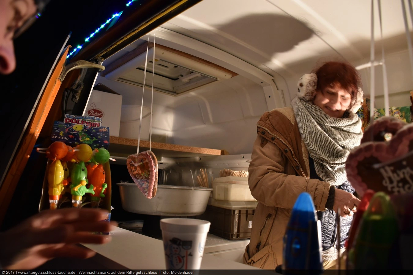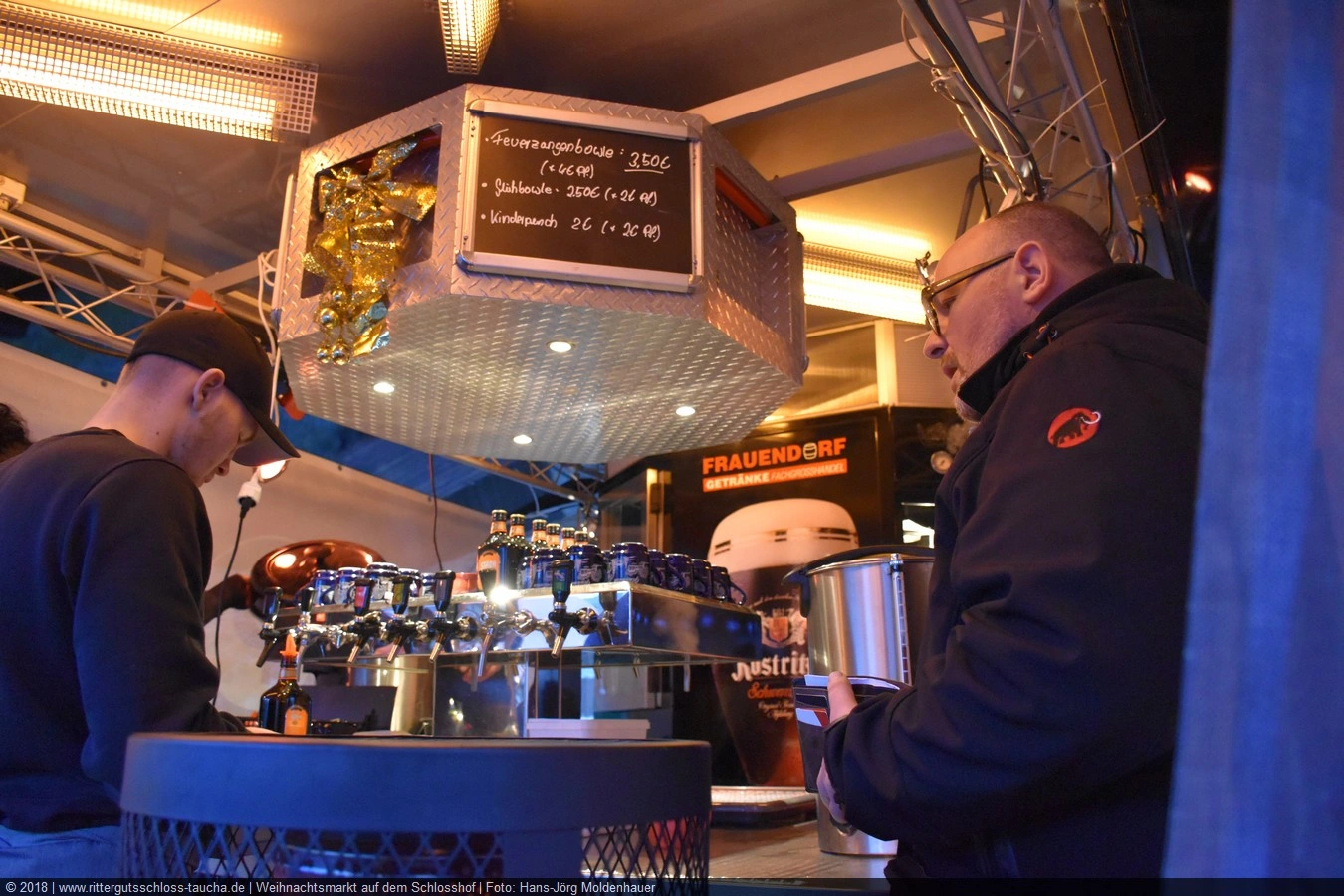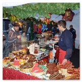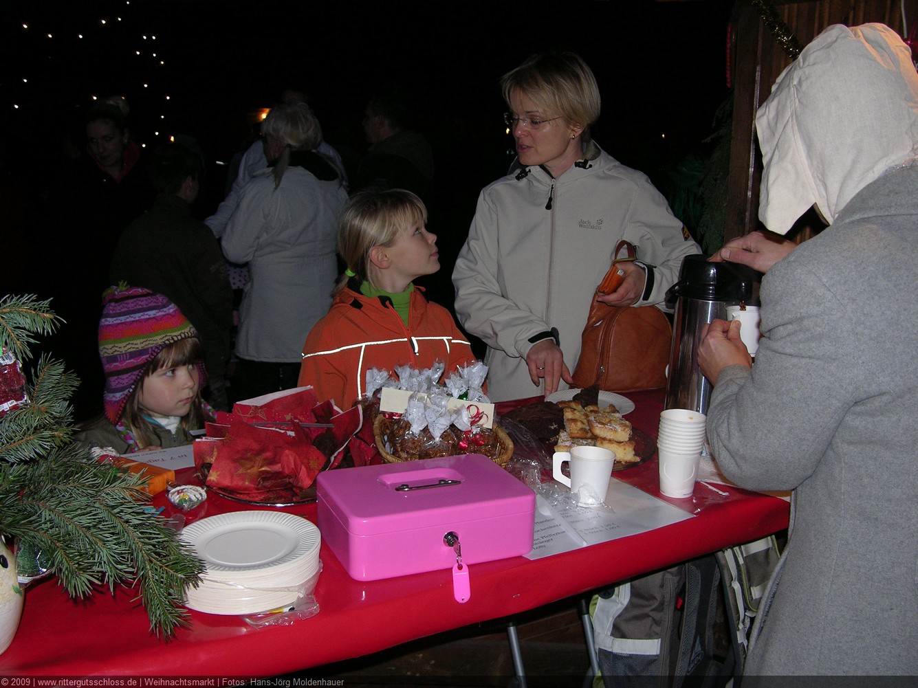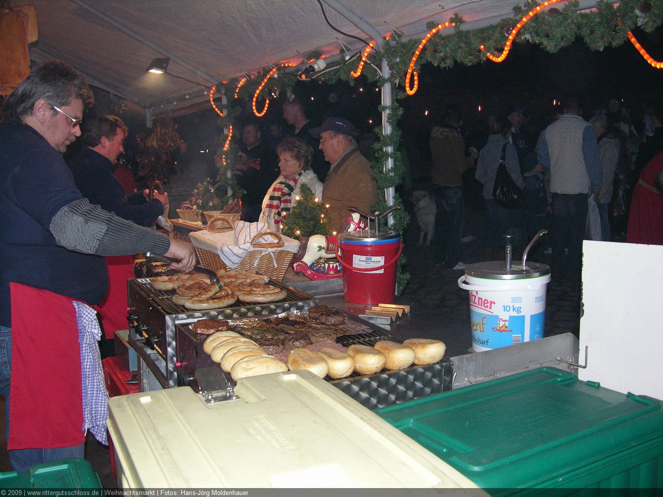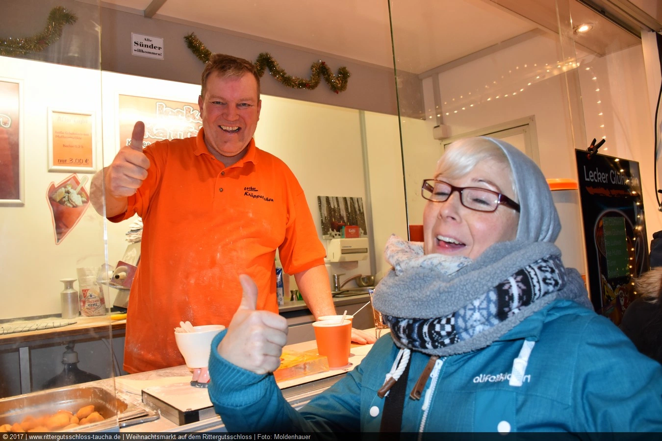 Maria begab sich sofort auf Entdeckungsreise. Was gab´s da alles zu entdecken? Ein Streichelzoo mit Schäfchen und Ziegen, Ponyreiten rund um den Weihnachtsbaum mitten auf dem Schlosshof, in den Eingängen zu den einzelnen Gebäuden ganz zauberhafte Märchenbilder mit lebensgroßen Figuren und über allem schwebte der typisch Duft von frisch Gebackenem aus der Schlossbäckerei. Natürlich fehlte auch Geräuchertes von Hoffleischer ebenso wenig wie die unvermeidlichen alkoholischen Getränke. Die Feuerzangenbowle – einfach köstlich.