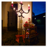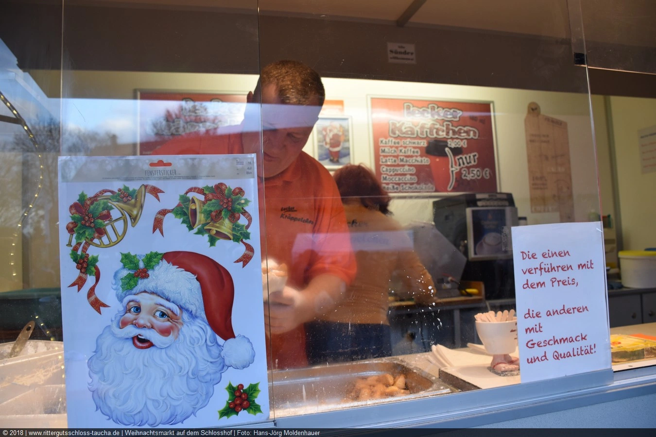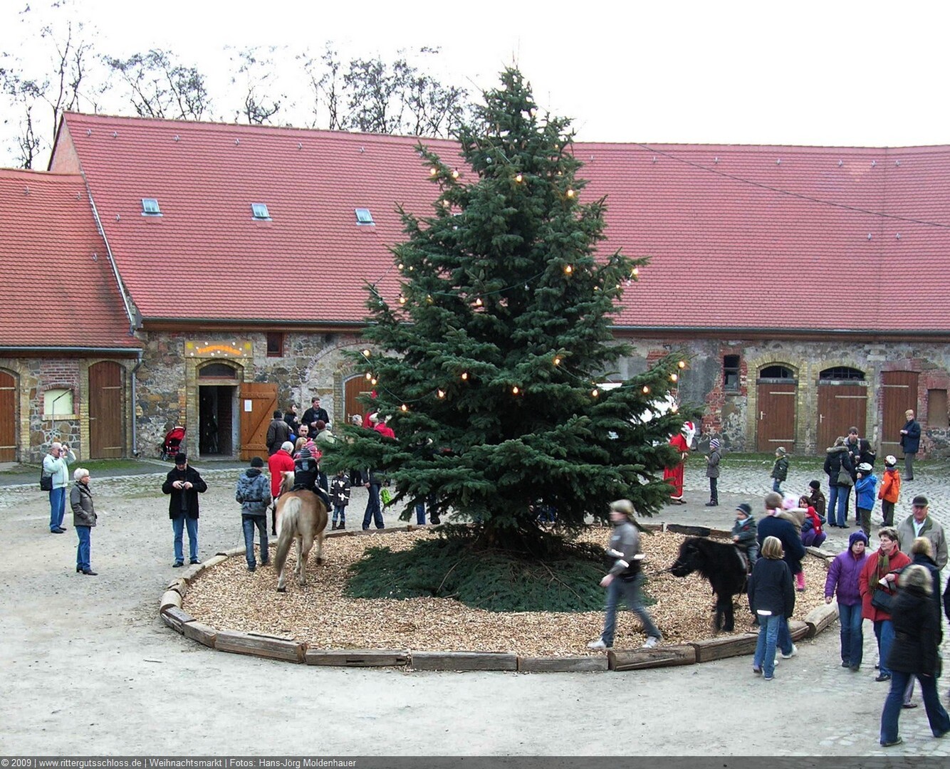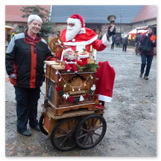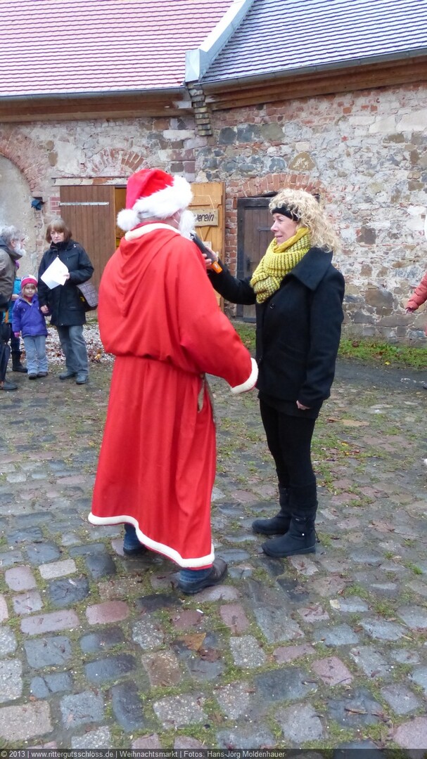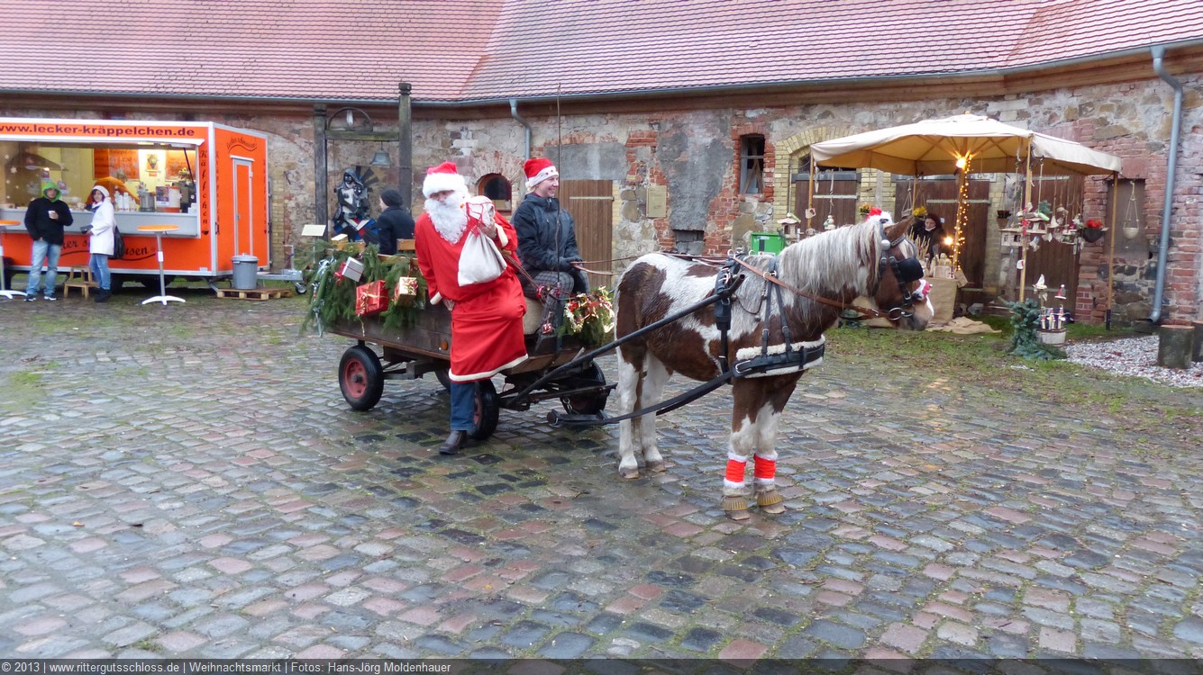 Meine Enkelin war schon ganz aufgeregt, je näher wir dem Schloss kamen. Am prächtigen Schlosstor wurden wir von einem leierkastenspielenden Weihnachtsmann freundlich begrüßt. Der Schlosshof war weihnachtlich geschmückt, aber nicht so überladen wie auf vielen anderen Weihnachtsmärkten.